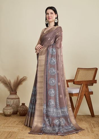 The saree also features stylish printed patterns, giving it a modern ethnic vibe that complements its traditional roots. It includes a matching blended cotton blouse piece in purple, allowing you to achieve a coordinated and sophisticated ensemble. The fabric is lightweight, ensuring easy draping and a comfortable fit for long hours.