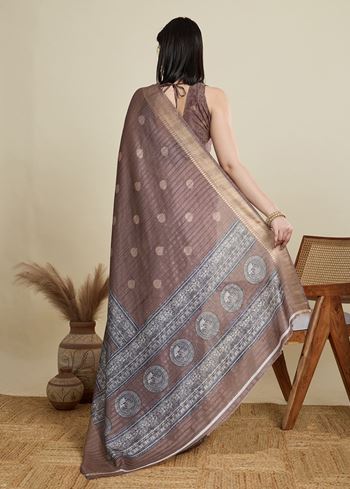 Add a royal touch to your ethnic collection with the Purple Cotton Woven Border Designer and Printed Saree, exclusively from Aethnofit Fashions. Crafted with premium blended cotton, this saree is designed to offer both elegance and comfort, making it an excellent choice for weddings, festive occasions, and ceremonial gatherings. The deep purple shade symbolizes richness and grace, while the intricate woven border adds a designer appeal that elevates your overall look.