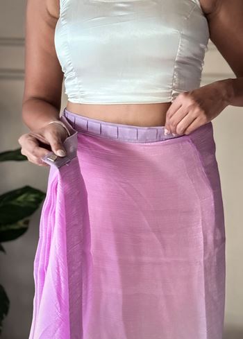 Purple Crunchy Pedding Solid Bollywood Style Ready To Wear Saree
