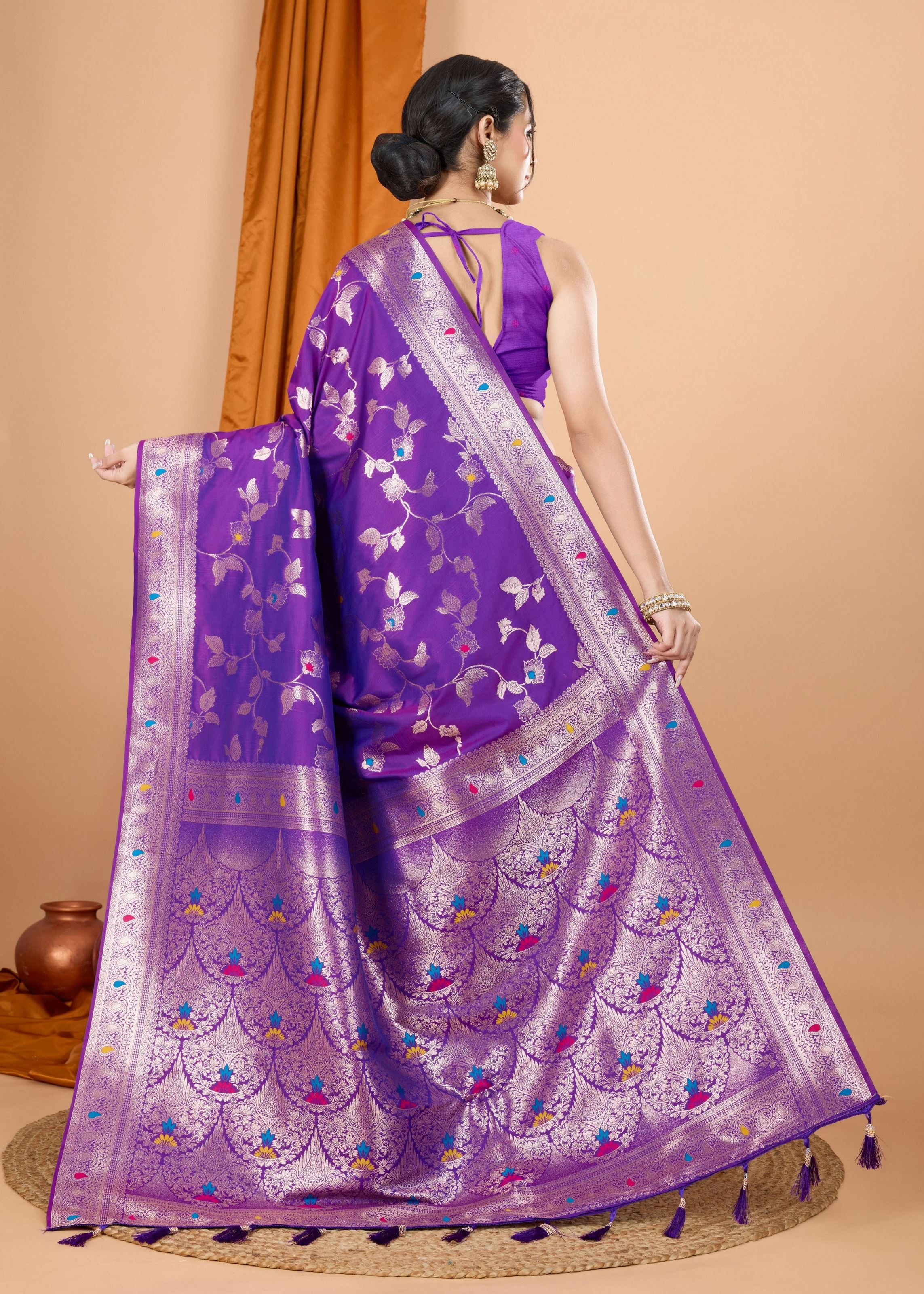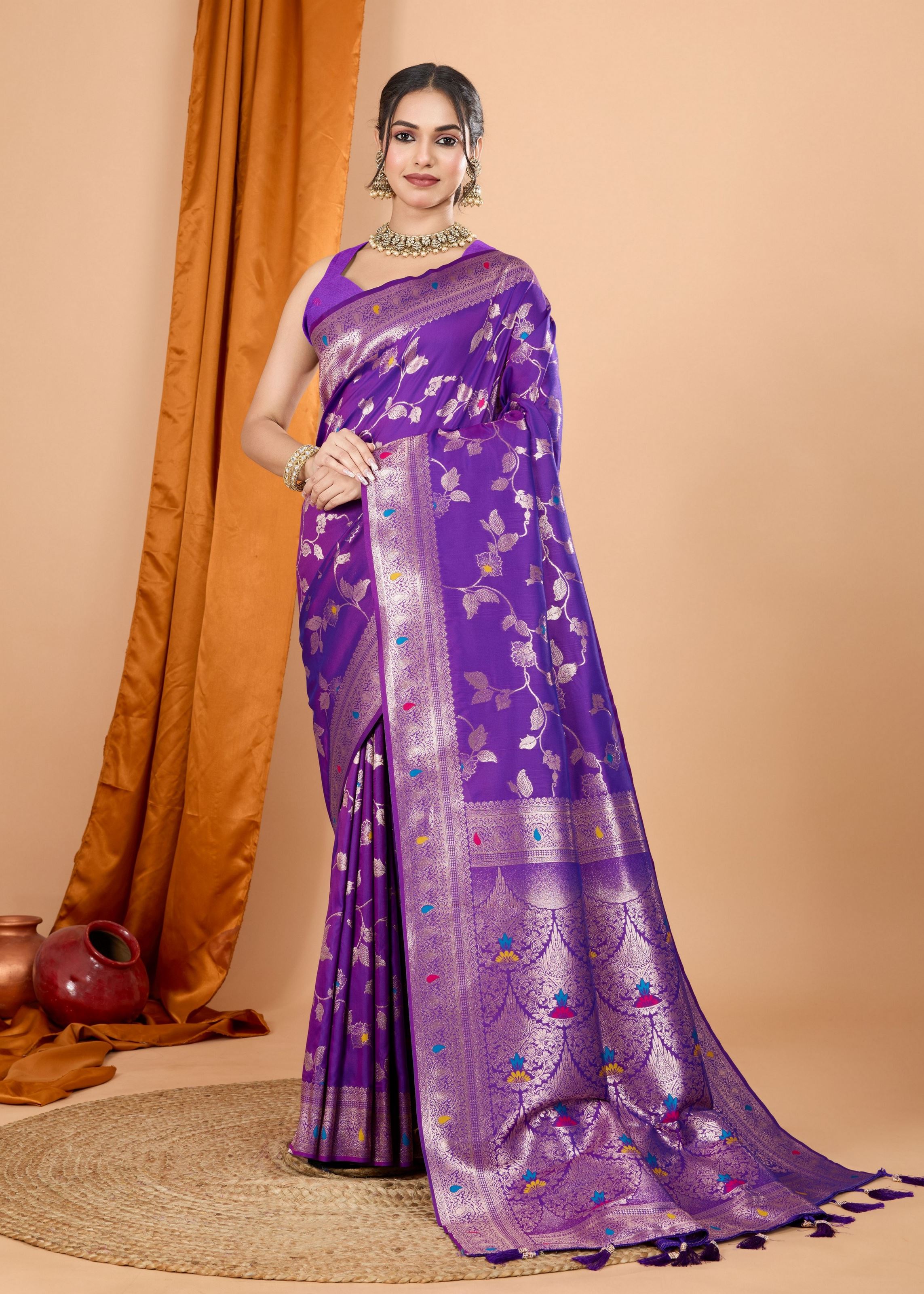 Purple Ethnic Banarasi Silk Saree With Woven Jari Designer Work