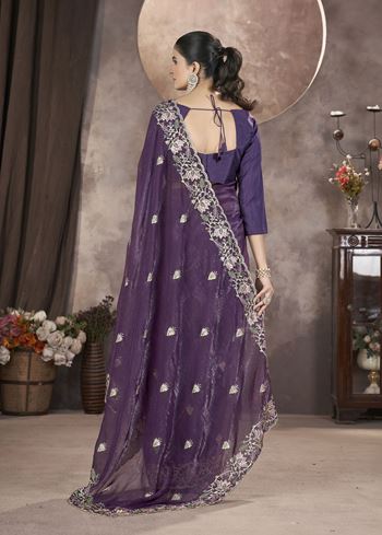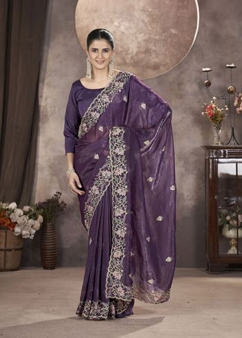 Purple Gold Crunchy Ethnic Partywear Glamorous Saree
