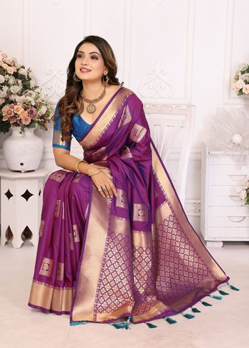 Purple Graceful Soft Silk Saree With Woven Zari Work