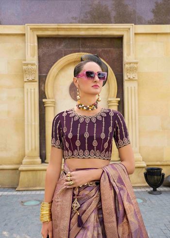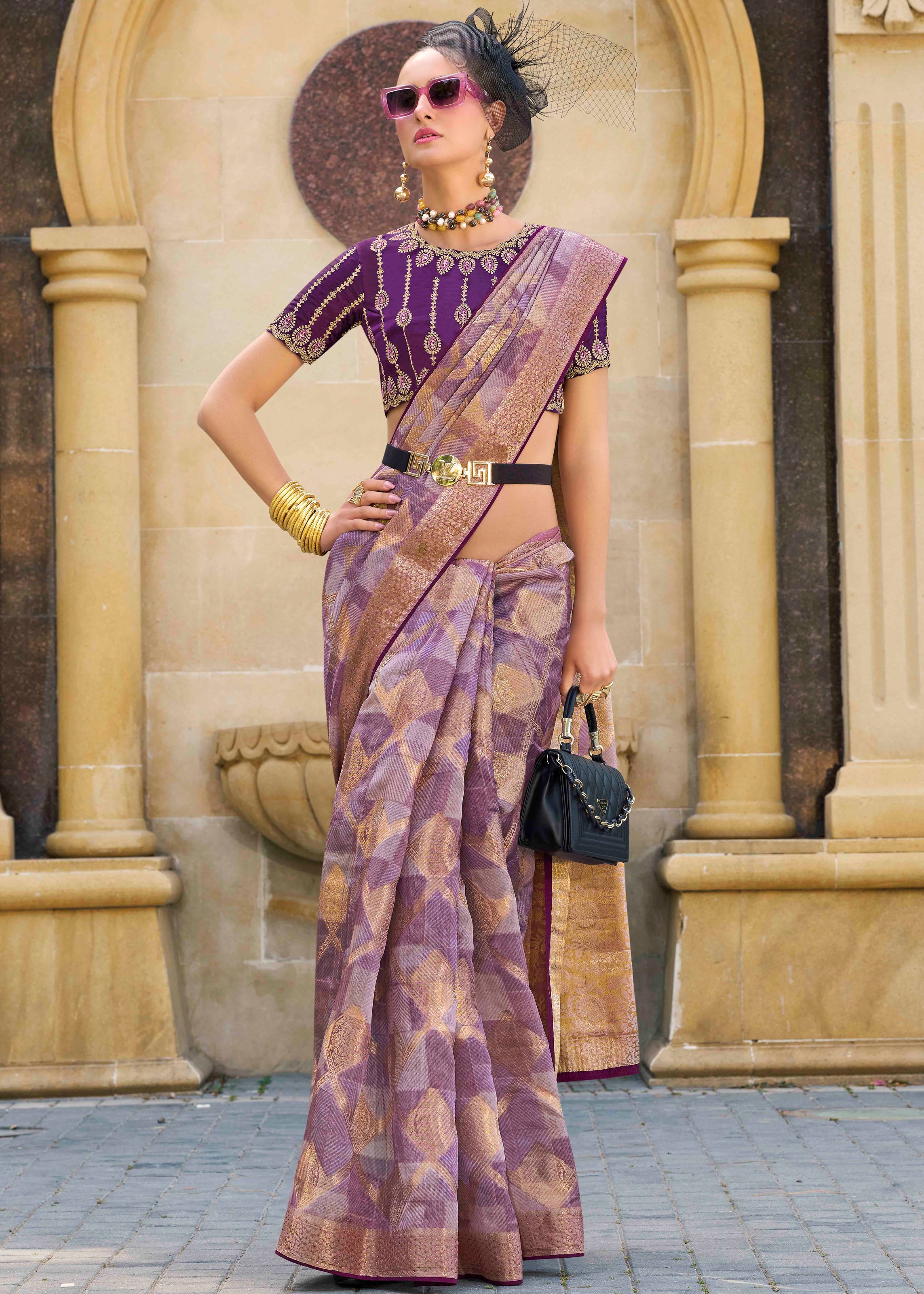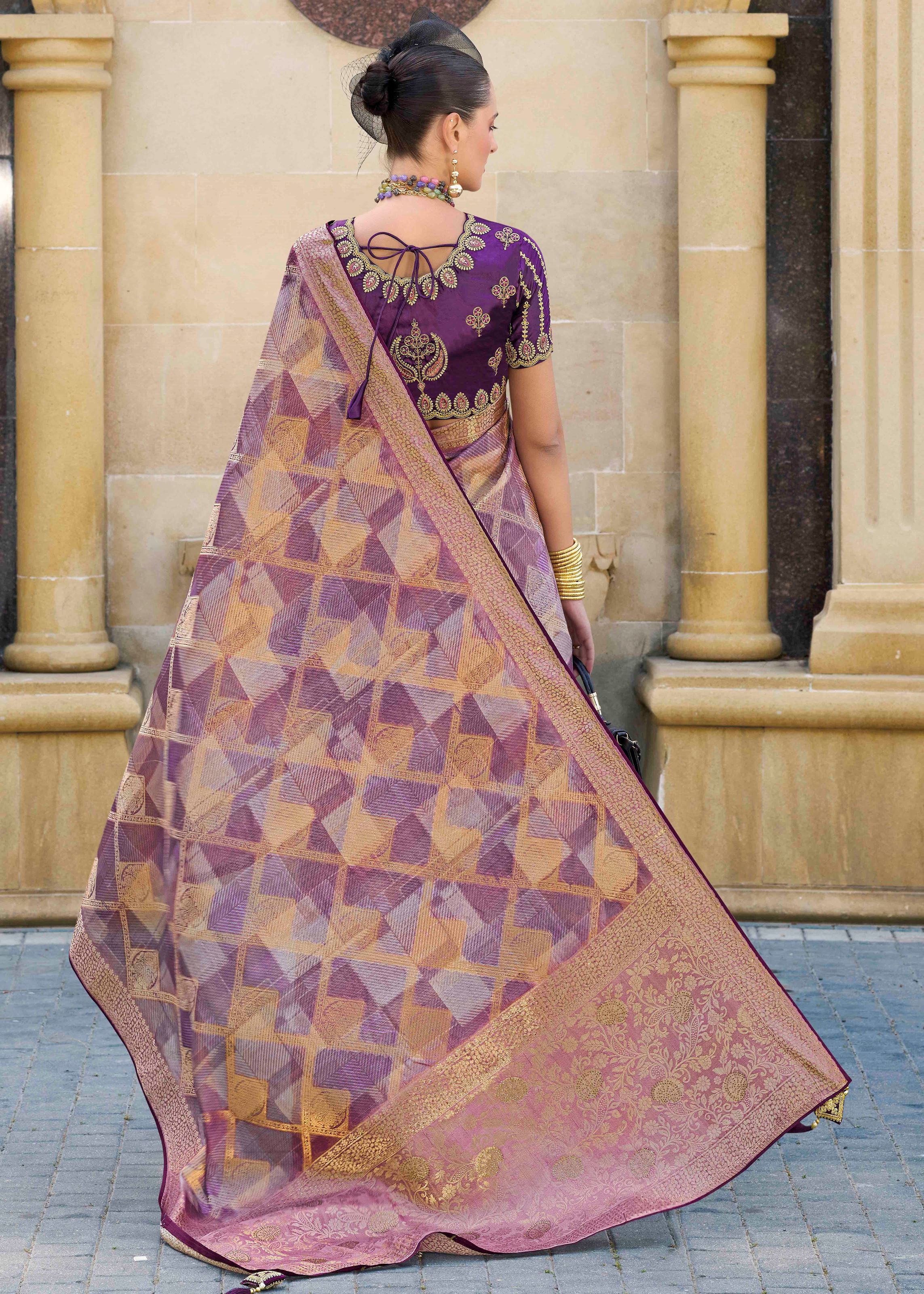 Purple Jacquard Silk Woven Saree With Embroidered Blouse
