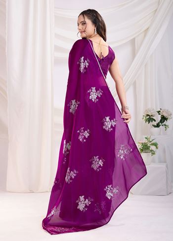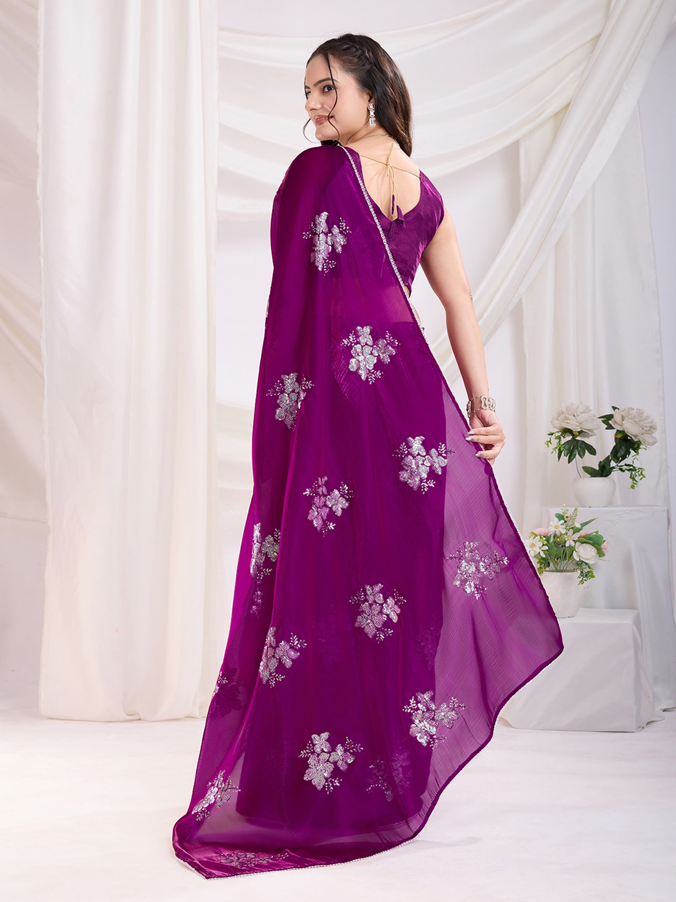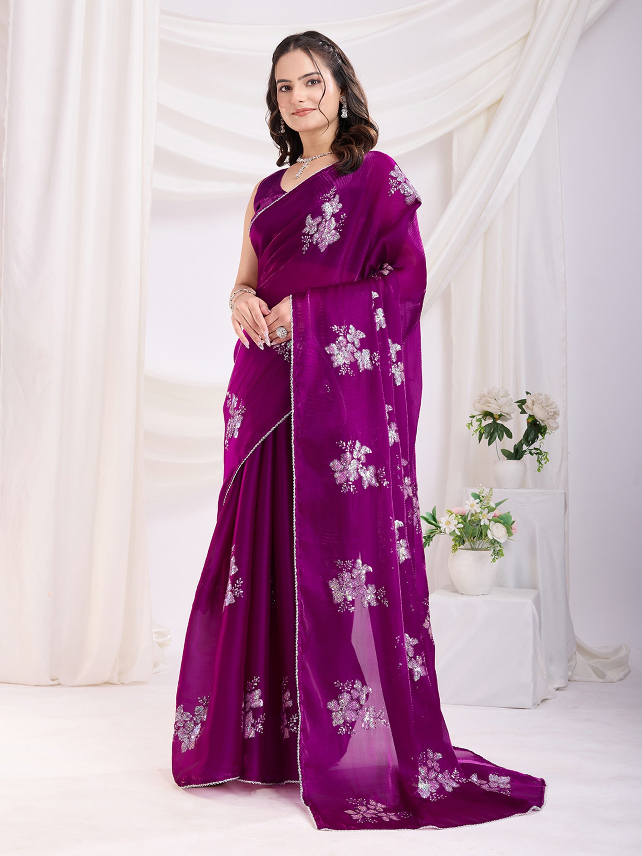 Purple Jimmi Choo Sequins Embroidery Work Ethnic Party Saree