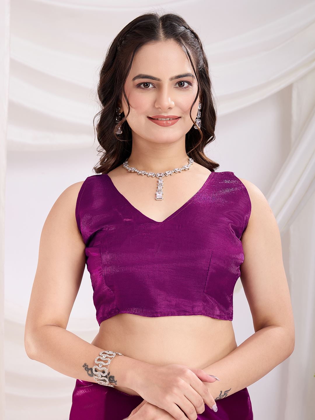 Make every celebration unforgettable with this Purple Jimmi Choo Sequins Embroidery Work Ethnic Party Saree from Aethnofit Fashions. Designed in premium art silk, this saree reflects glamour, richness, and designer craftsmanship. The deep purple shade exudes royalty, while the intricate embroidery and delicate sequins add a sparkling elegance, making it the perfect pick for receptions, cocktail parties, and festive evenings. The matching purple art silk blouse completes the look with a seamless and stylish appeal.
