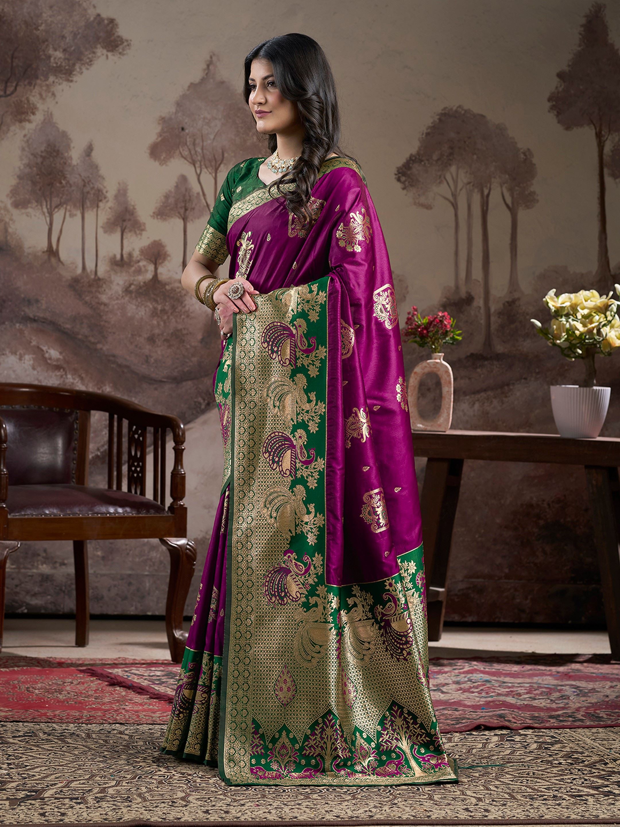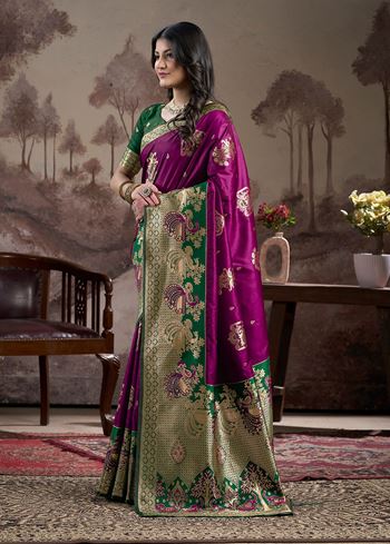 Purple Lichi Silk Woven Rich Pallu Designer Heavy Partywear Saree