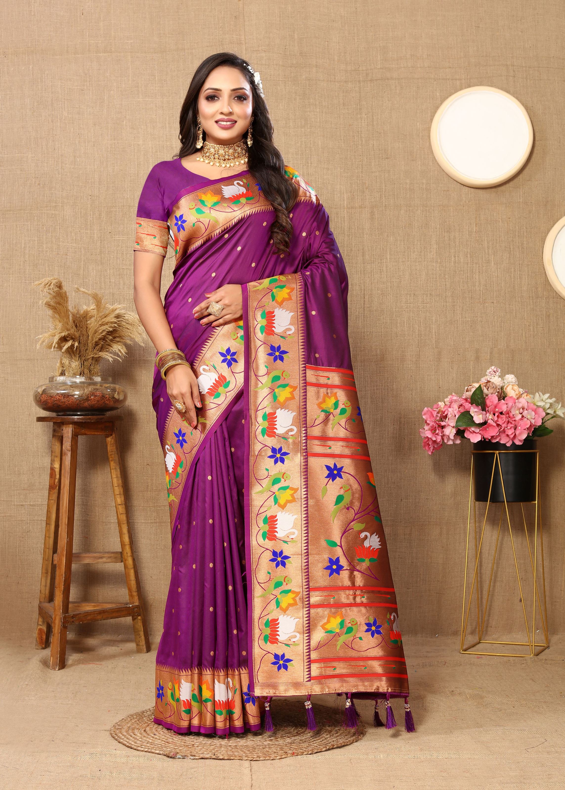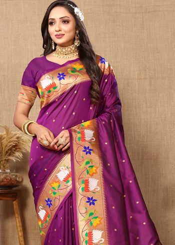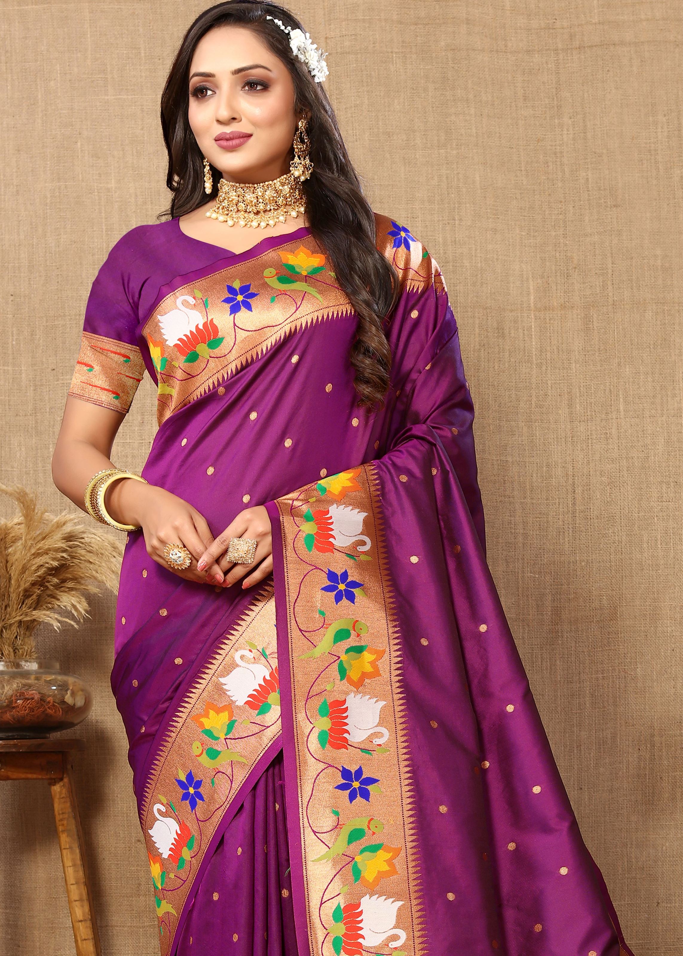 Purple Paithani Silk Woven Meenakari Paithani Designer Ethnic Heavy Looks Saree