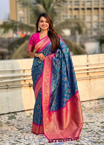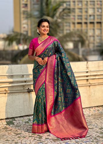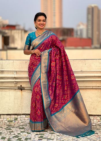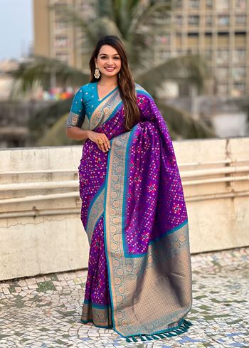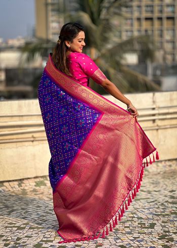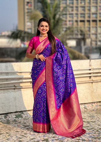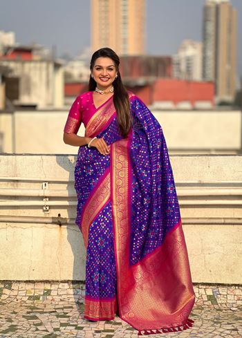 Purple Patola Silk Weaving Ikkat Meenakari Designer Graceful Ceremonial Saree