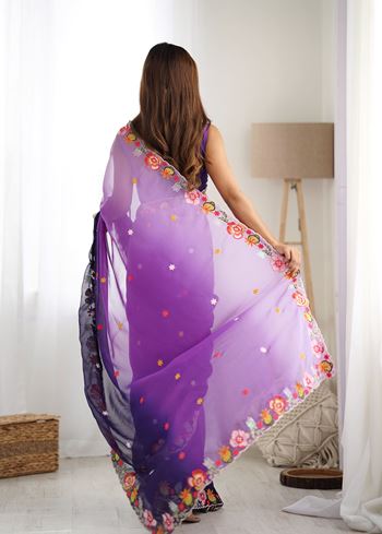 Purple Pedding With Embroidery Work Bollywood Style Georgette Saree