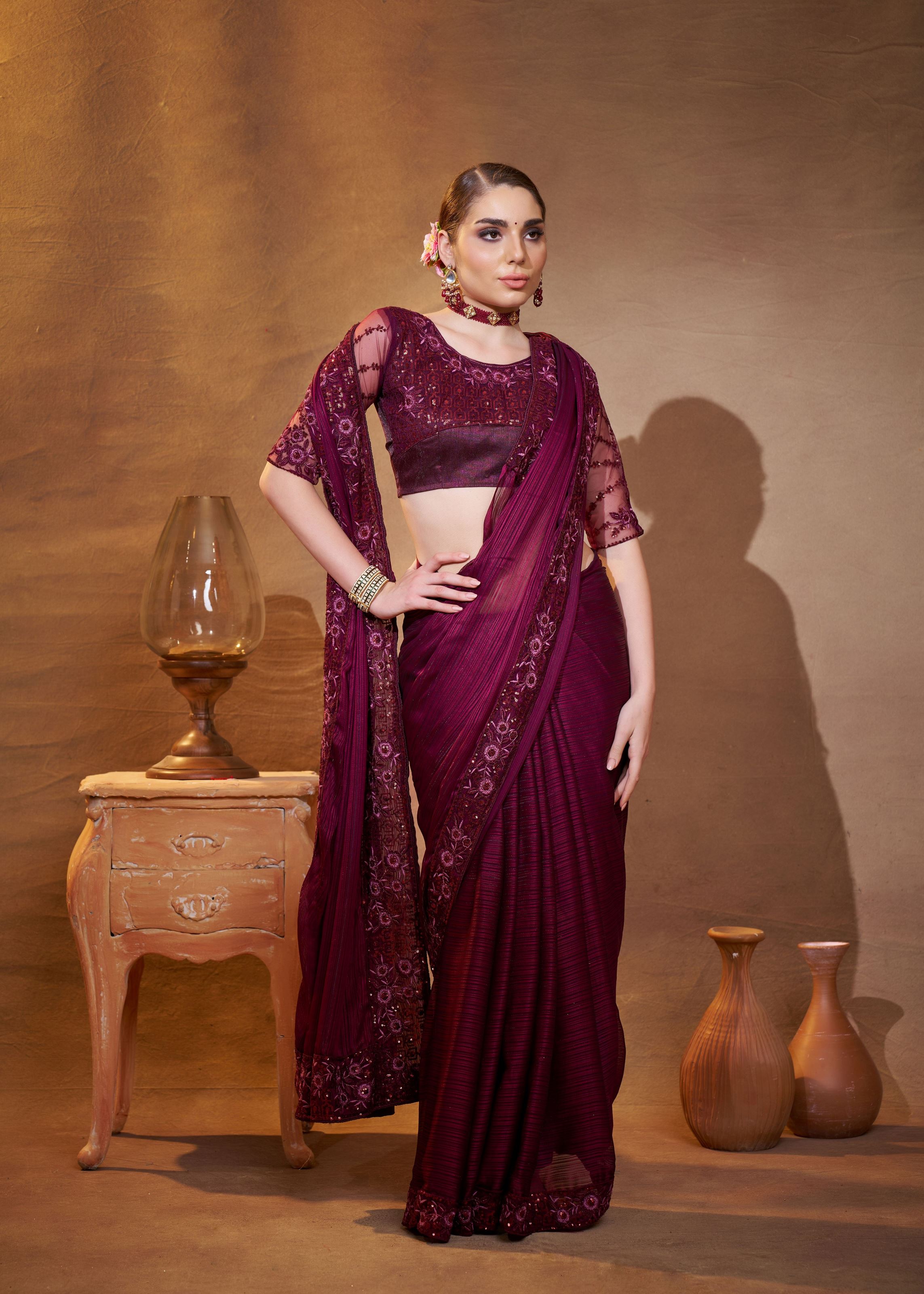 Purple Satin Jacquard Designer Partywear Saree For Rich Indian Looks