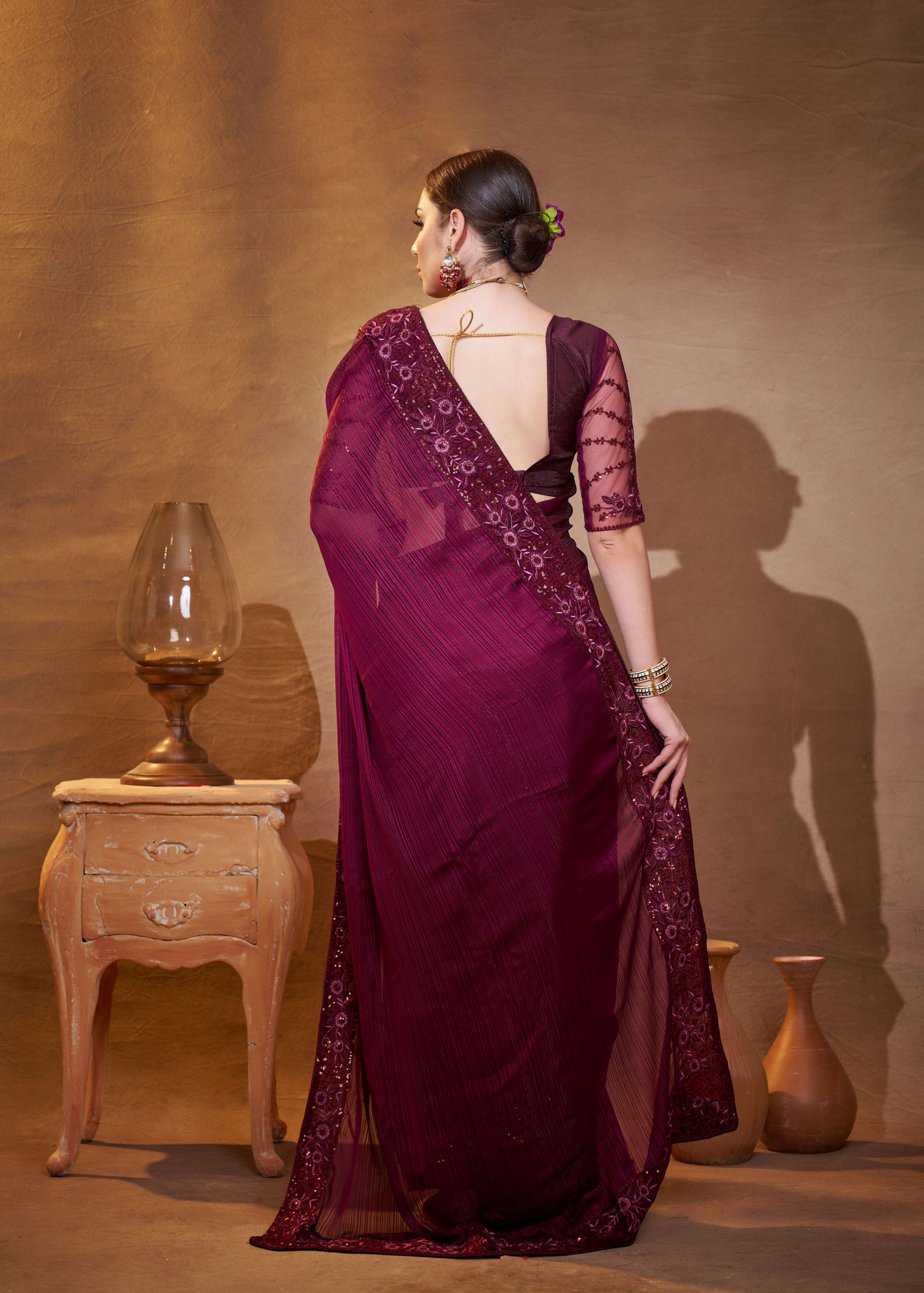 The matching art silk blouse complements the saree seamlessly, creating a harmonious and elegant look. Lightweight yet glamorous, this designer saree combines contemporary trends with traditional charm, making it ideal for partywear and special occasions. Its rich texture and detailed embroidery ensure you make a lasting impression wherever you go.
