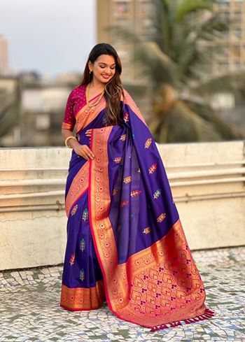 Purple Soft Silk Woven Meenakari Designer Heavy Ceremonial Saree