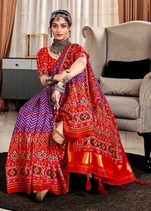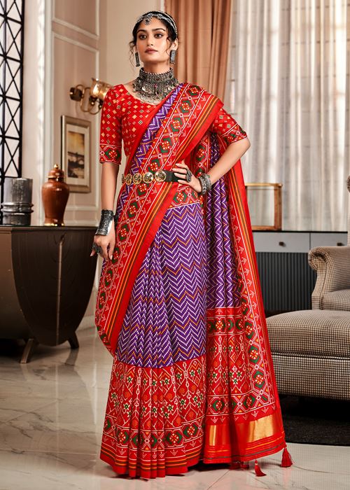 Purple Tussar Silk Saree With Patola Digital Print with Lagadi Patta Pallu