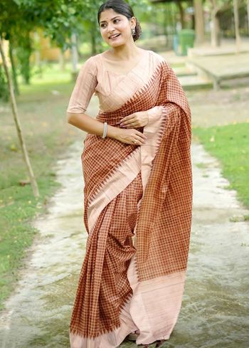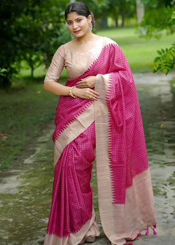 Bring regal elegance to your ethnic wardrobe with this Purple Tussar Silk Saree with Checks and Contrast Pallu from Aethnofit Fashions. Made from luxurious tussar silk, the saree features a deep purple hue adorned with subtle check patterns that enhance its traditional charm. The contrast pallu adds a refined touch of sophistication, while the cream tussar silk blouse pairs beautifully to complete the ensemble with understated grace.