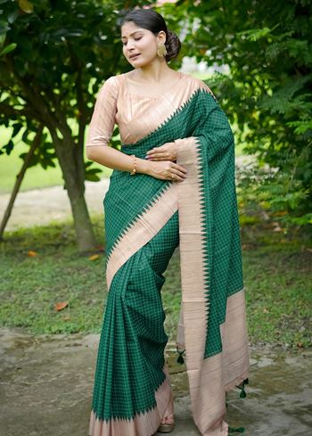 Ideal for weddings, religious ceremonies, or festive gatherings, this saree offers a perfect blend of classic craftsmanship and modern appeal. Tussar silk is known for its rich texture and natural sheen, making this drape both breathable and elegant — an ideal pick for all-day comfort and timeless style.