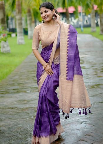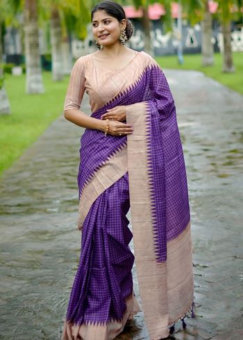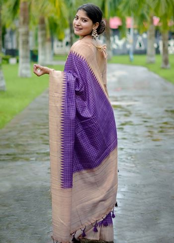Purple Tussar Silk Saree with Checks and Contrast Pallu