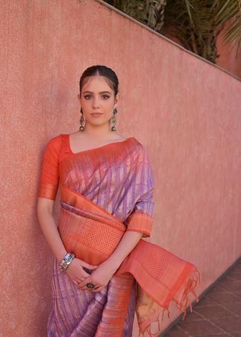 Pair it with gold-toned jewelry and a classic bun, or wear it with contemporary accessories for a fusion look. The Purple Tussar Silk Saree with Ethnic Motifs and Contrast Pallu is an exquisite choice for those who cherish tradition with a vibrant twist.