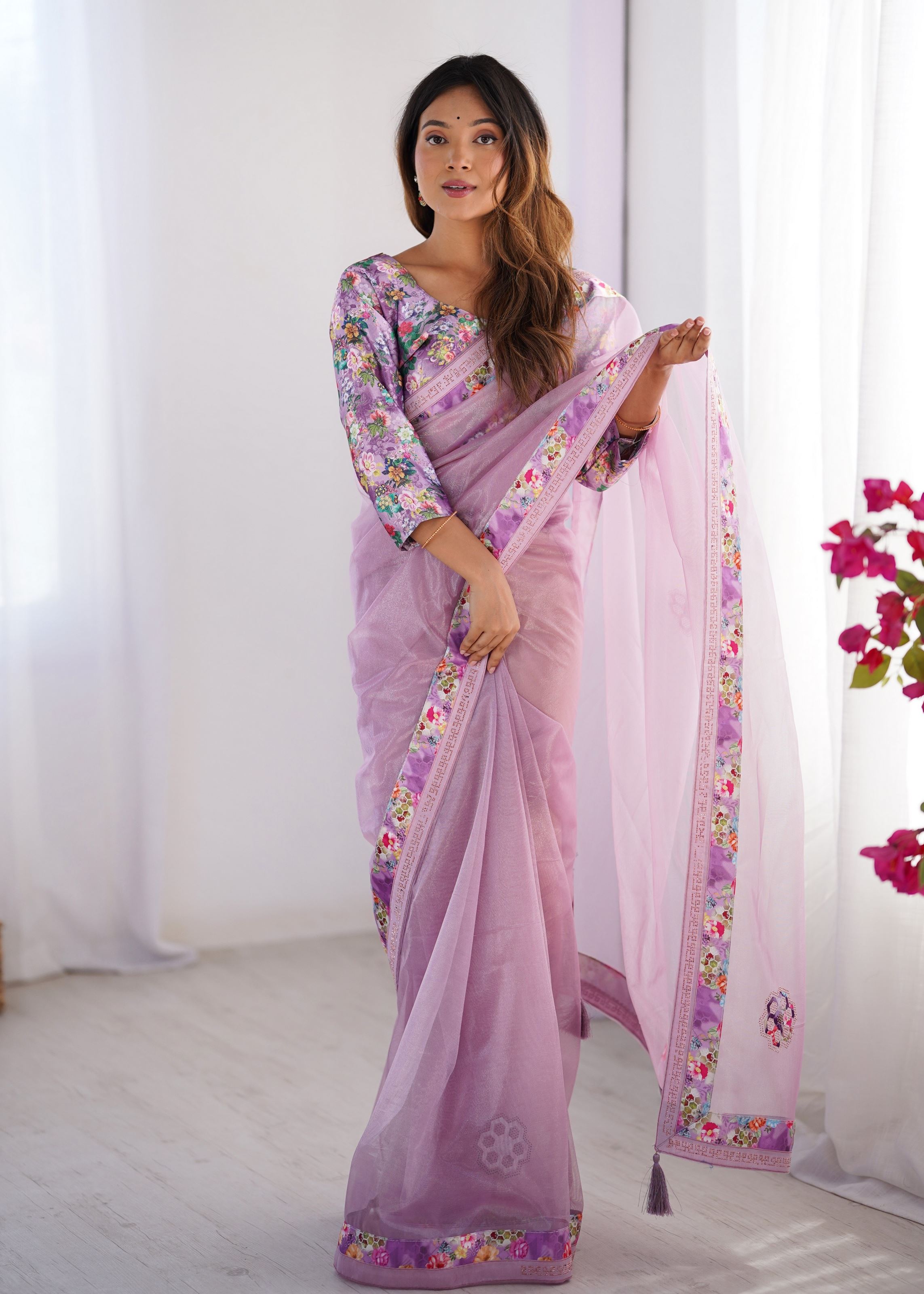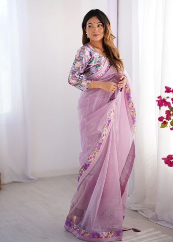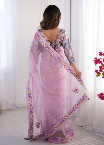 Purple Twill Net Designer Printed with Swarovski Work Partywear Saree