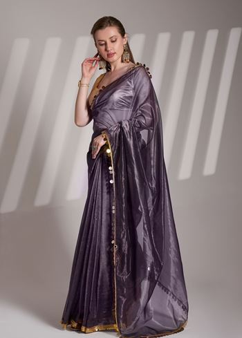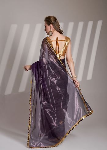 Purple Twill Net Solid Fancy Designer Bollywood Style Saree