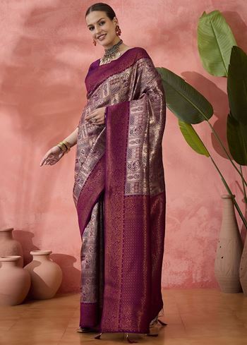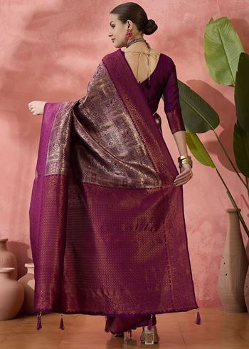 Purple Woven Jari Designer Silk Blended Saree For Festive Looks