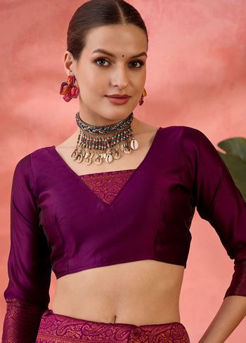 Pair this elegant saree with statement jewelry, classic heels, and a stylish clutch for an unforgettable appearance. Designed for women who value timeless fashion and fine craftsmanship, this saree is a versatile addition to your festive collection.Step into the spotlight with confidence and grace in this Purple Woven Jari Silk Blend Saree, a masterpiece that reflects beauty, tradition, and sophistication.