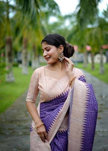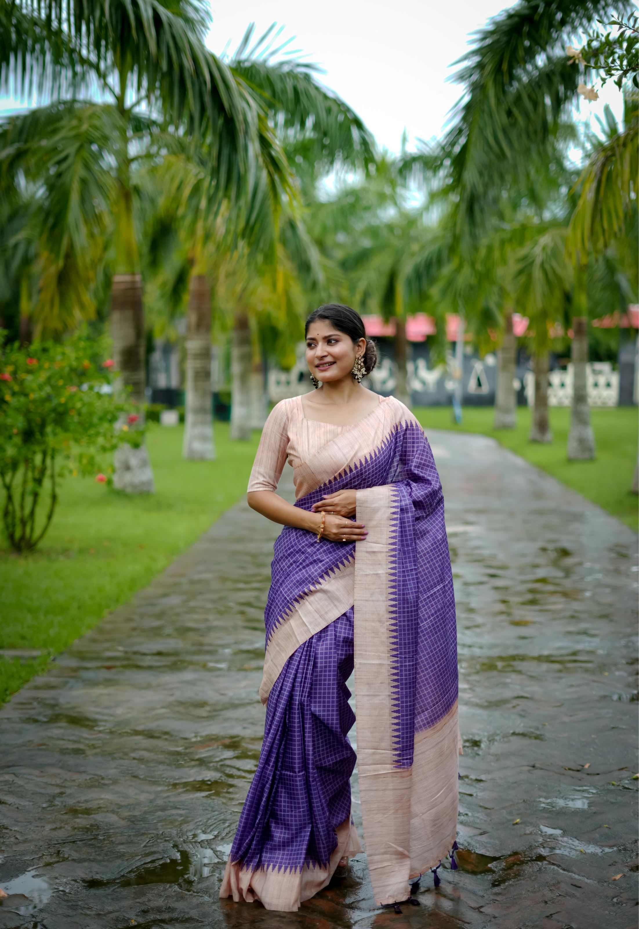 Add a regal touch to your ethnic collection with the Purple Woven Kantha Designer Tussar Silk Saree With Printed Design from Aethnofit Fashions. Made from premium silk, this saree reflects the natural sheen of Tussar Silk while featuring exquisite Kantha woven detailing that speaks of timeless craftsmanship. The deep purple shade brings sophistication and elegance, perfectly complemented by the beige silk blouse. Whether it’s a wedding, festive celebration, or cultural gathering, this saree is designed to make a graceful statement.