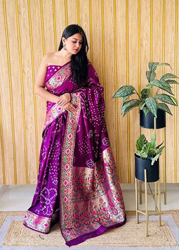 Purple Woven Paithani Designer With Bandhej Printed Beautiful Ceremonial Saree