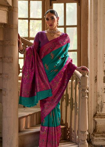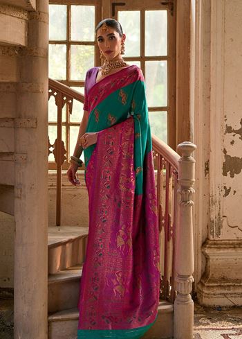 Rama Banarasi Silk Saree with Kalamkari Zari Design