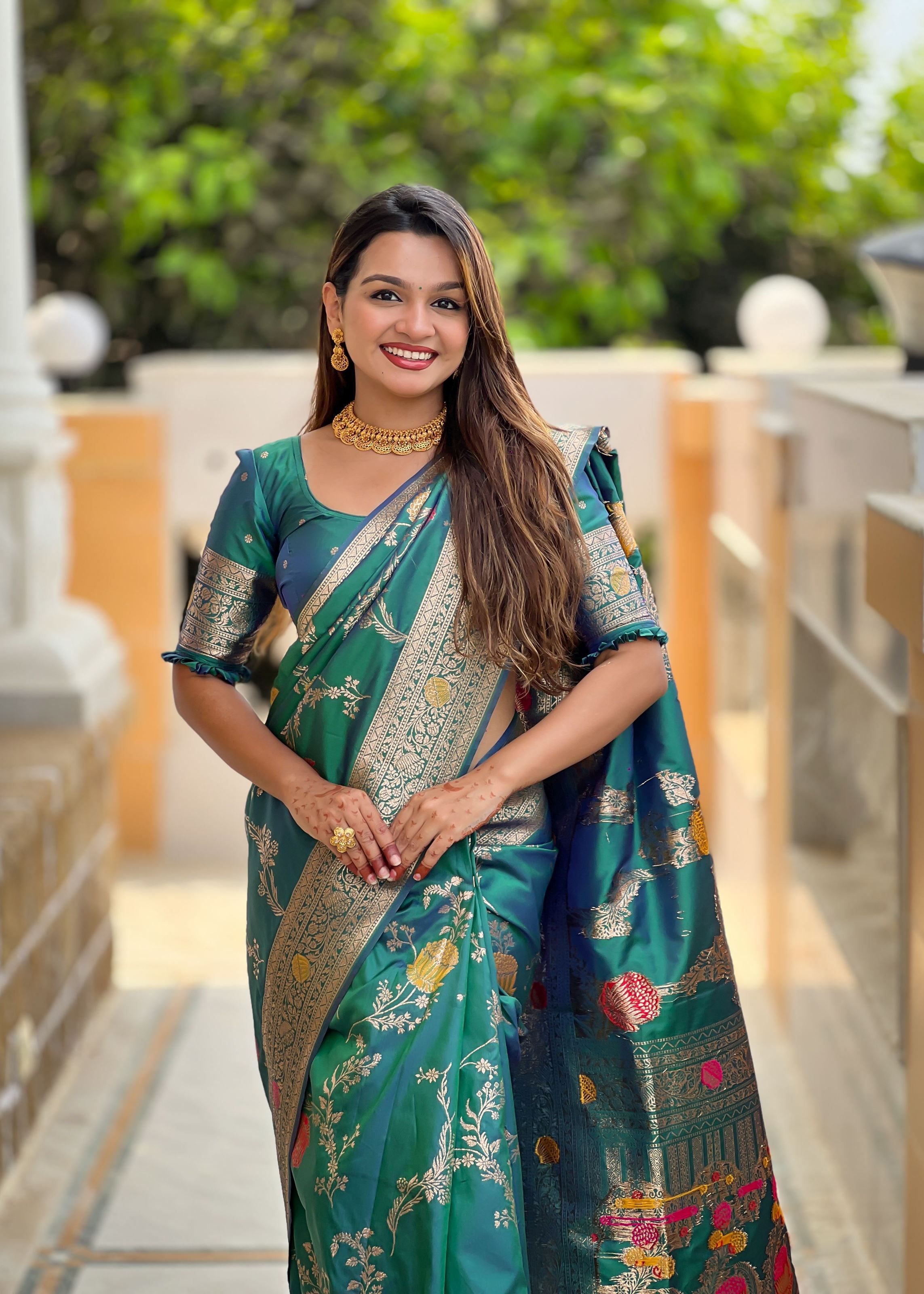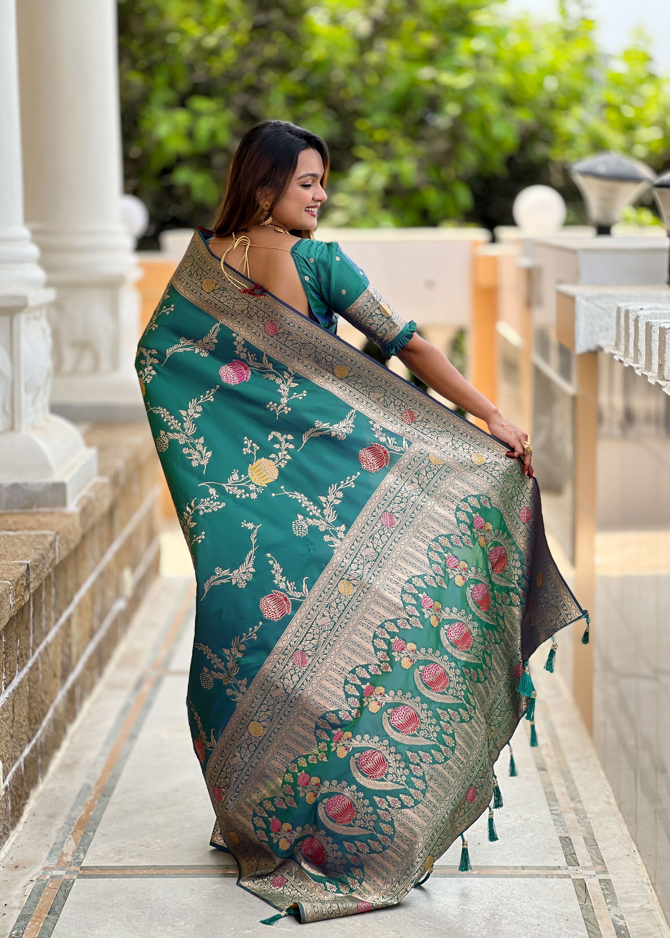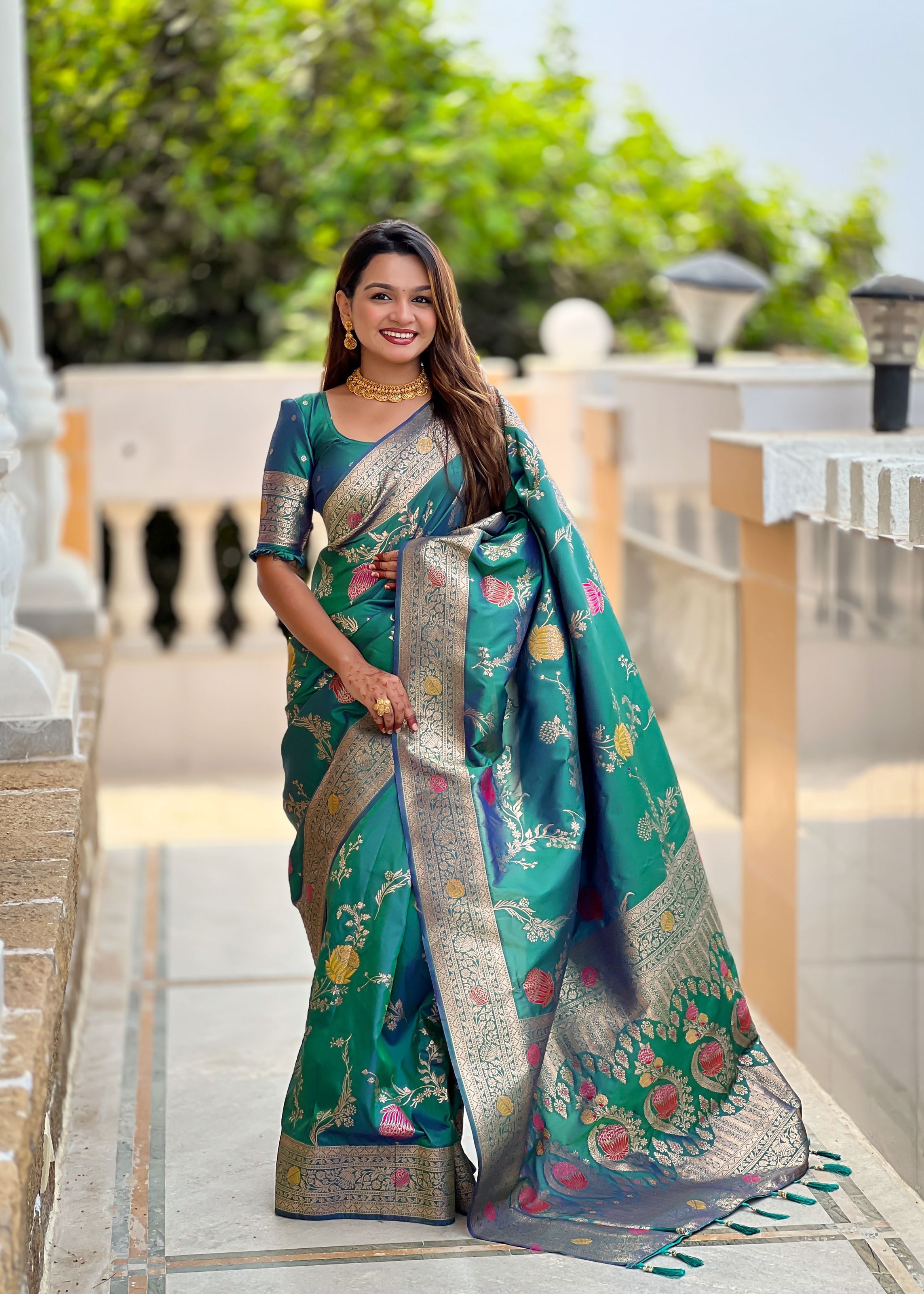 Rama Beautiful Banarasi Silk Woven Meenakari Designer Graceful Ethnic Saree