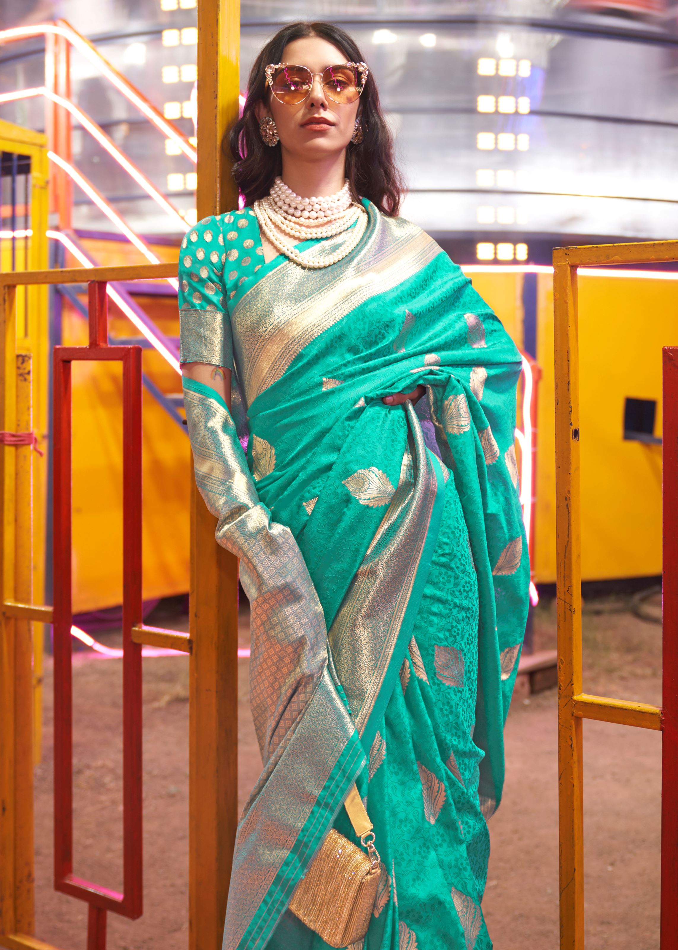 Rama Green Banarasi Silk Saree With Jacquard Woven Work