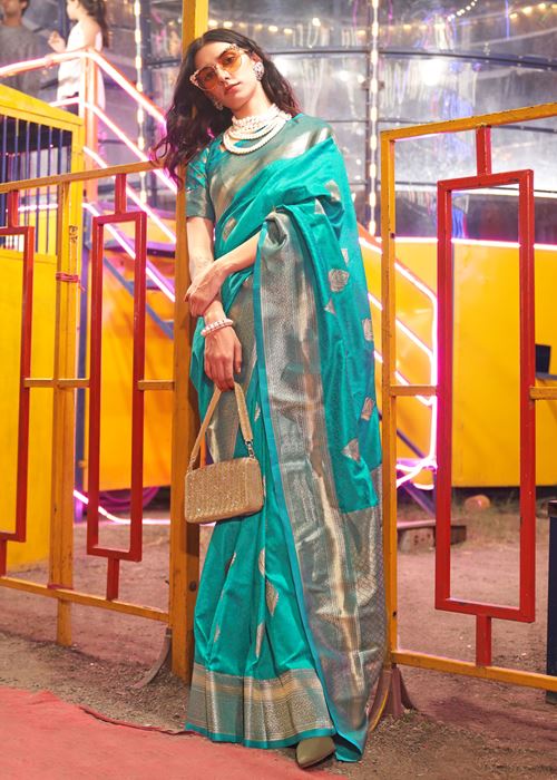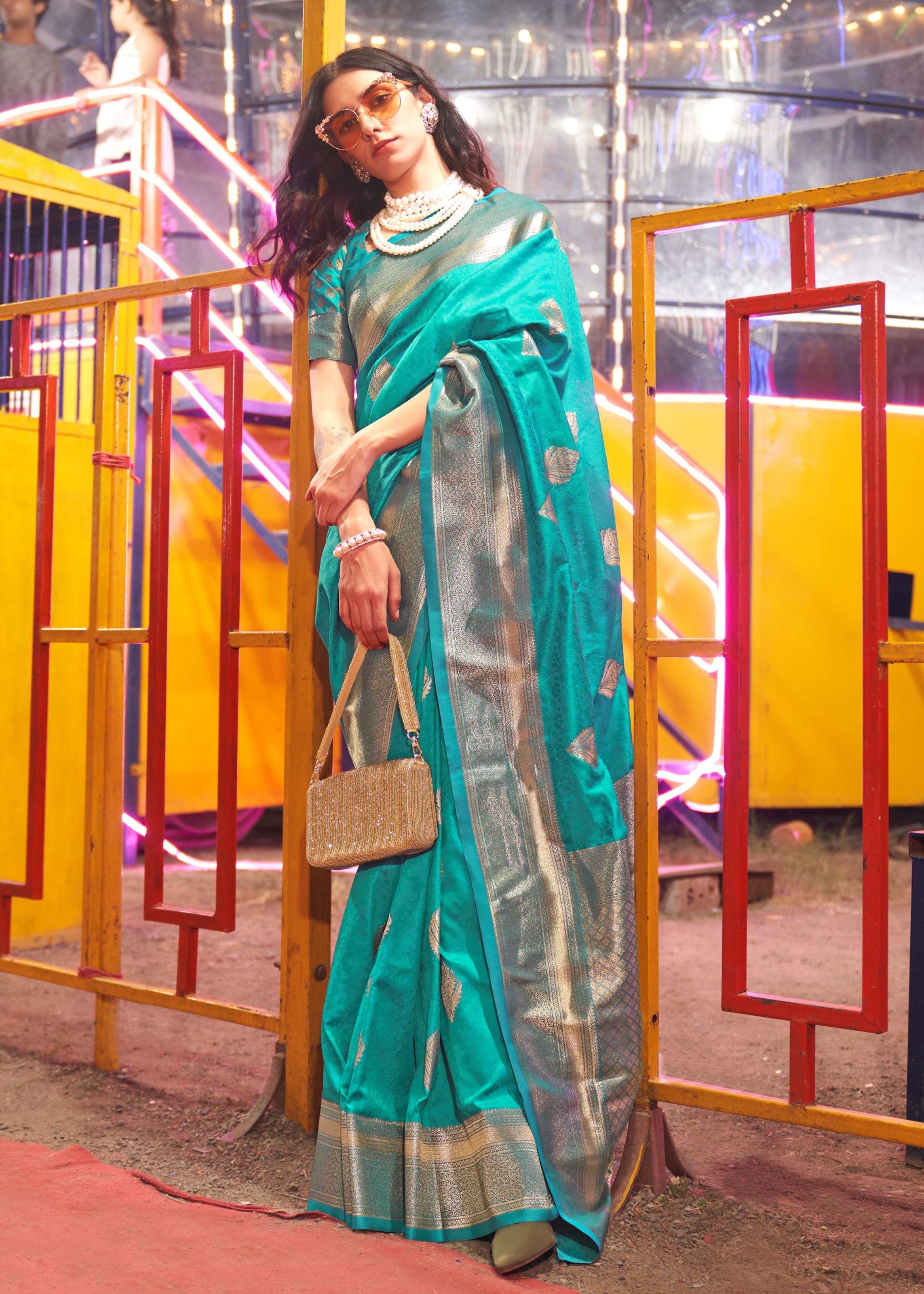 Rama Banarasi Silk Saree With Jacquard Woven Work