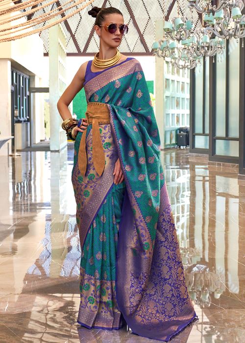 Rama Green Handloom Silk Saree With Jacquard Woven Work