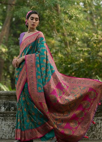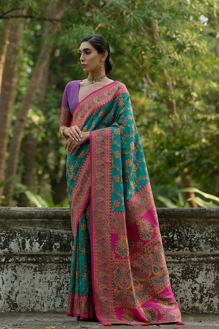 Rama Pashmina Silk Saree with Floral Jal and Thread Pallu