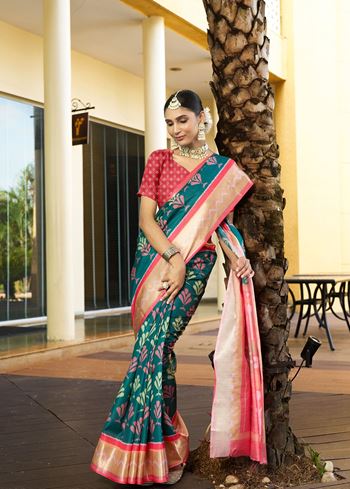Rama Trendy Crepe Saree With Woven Zari Patta And Designer Print Work