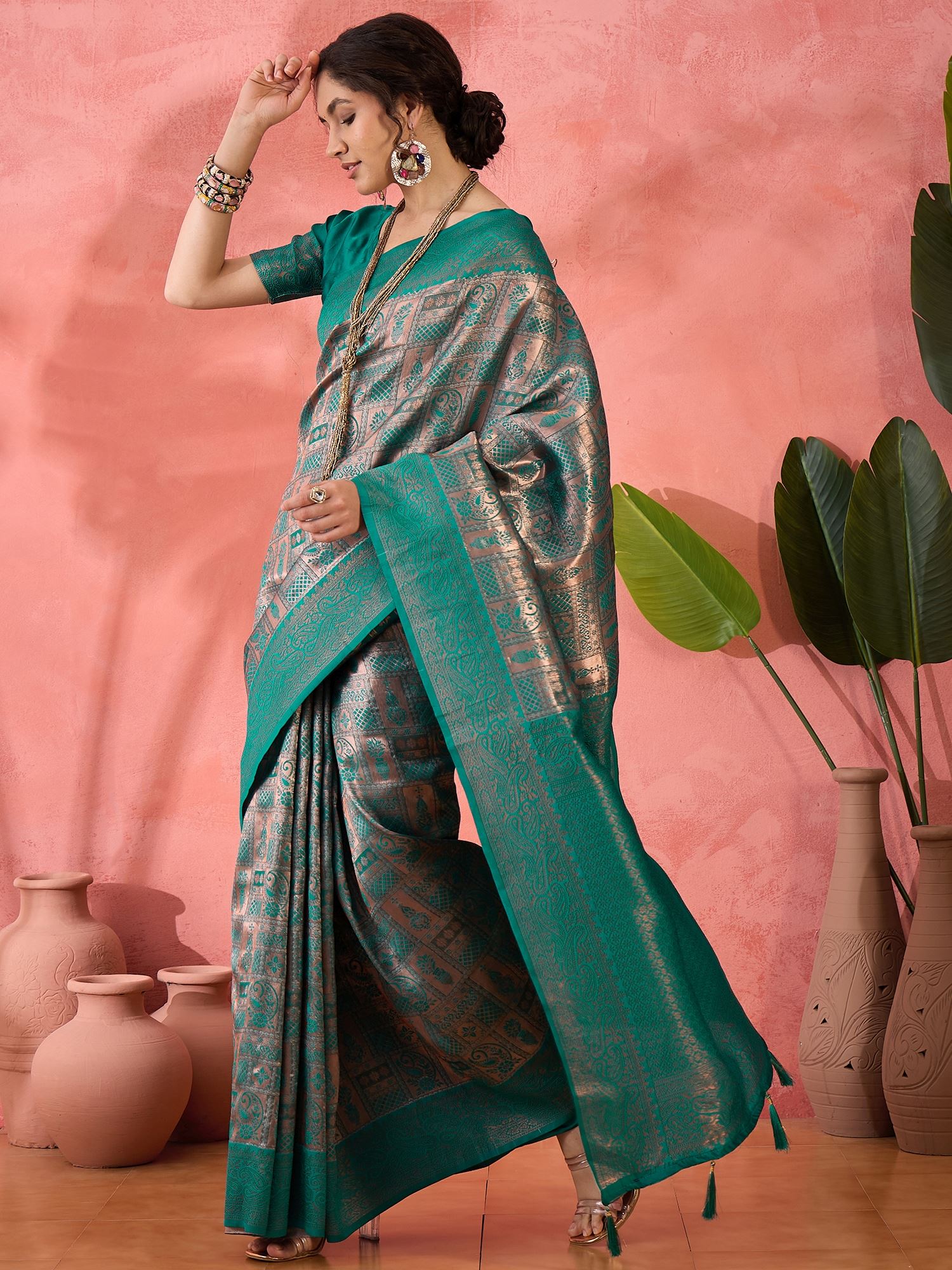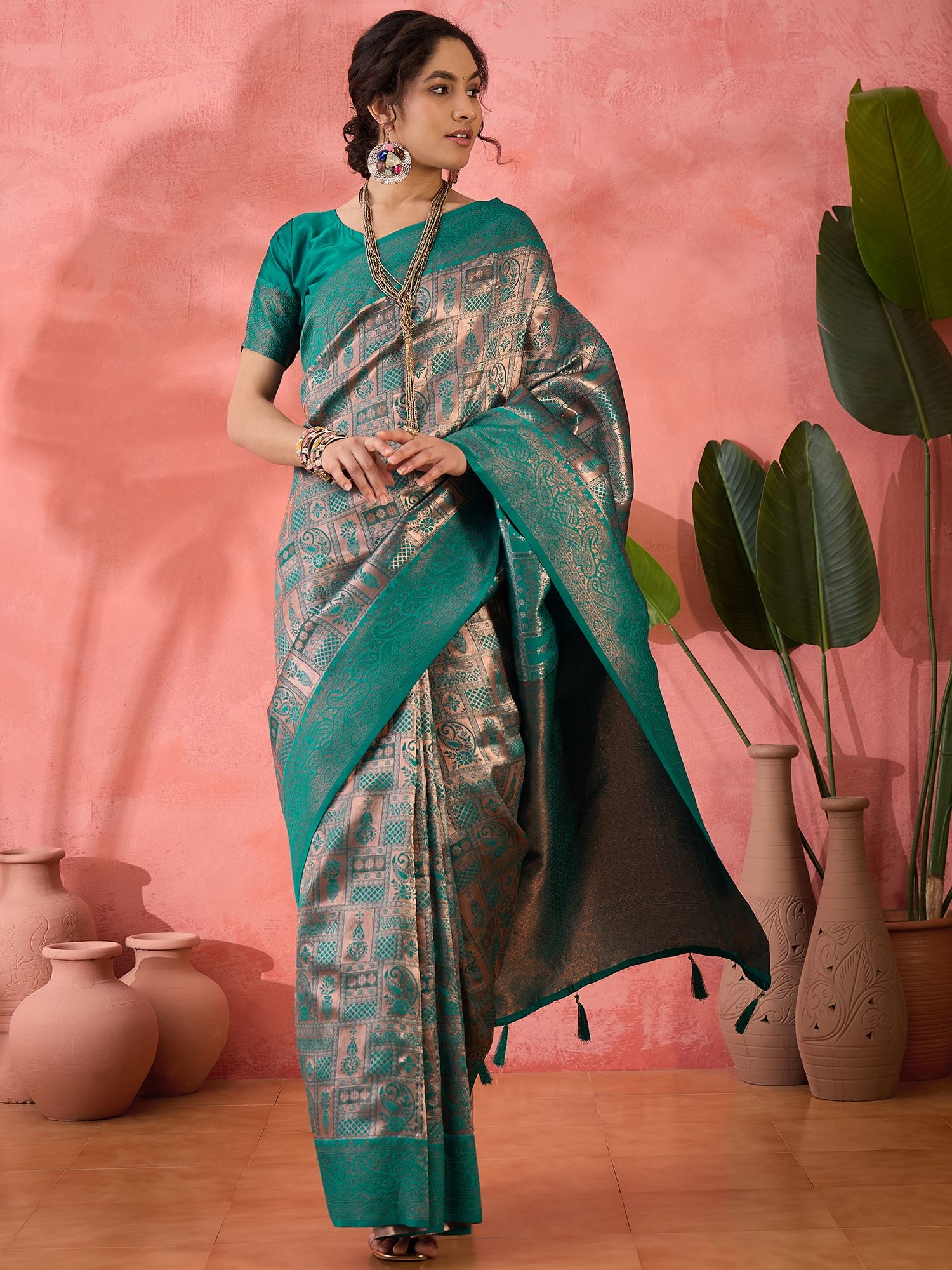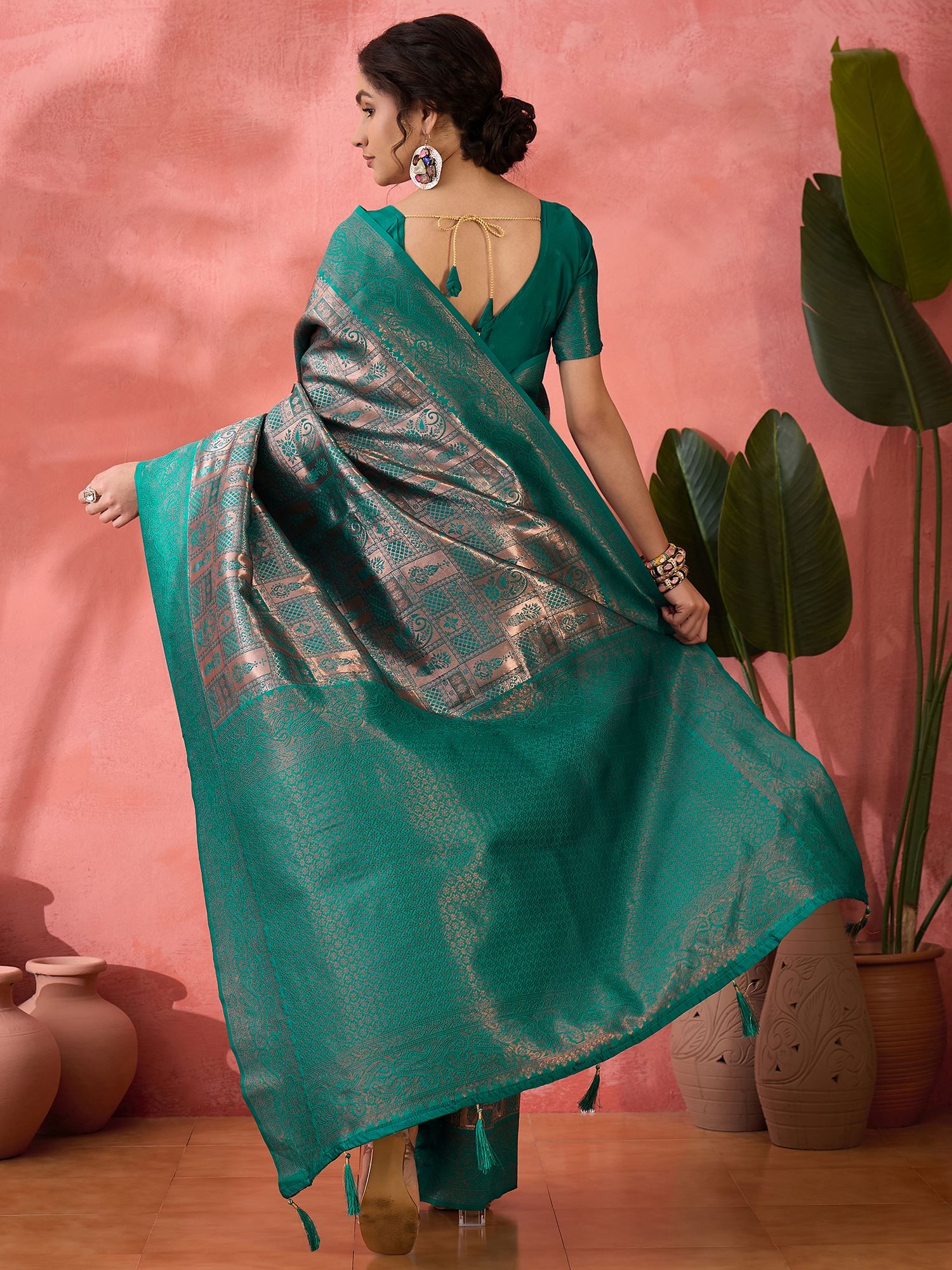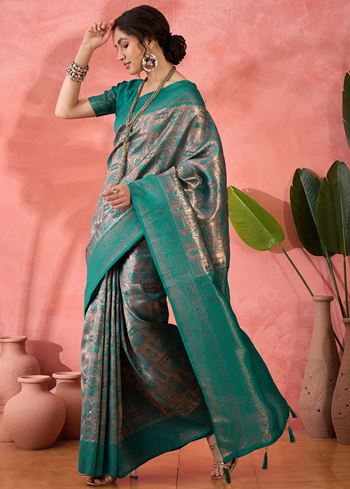 Rama Woven Jari Designer Silk Blended Saree For Festive Looks