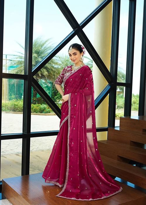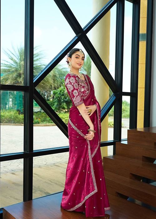 Rani Colour Zimichhu Silk Embroidery Work Saree