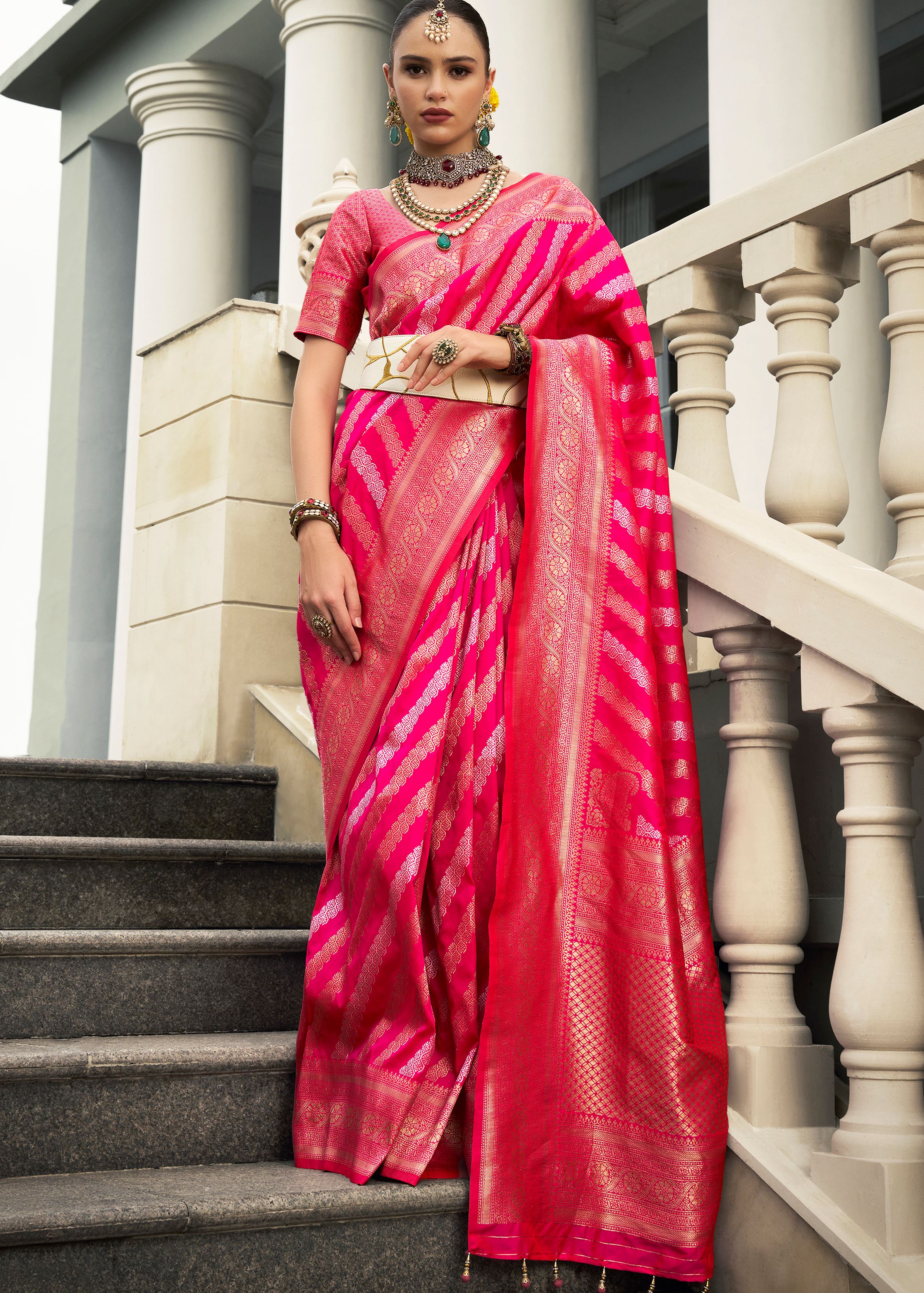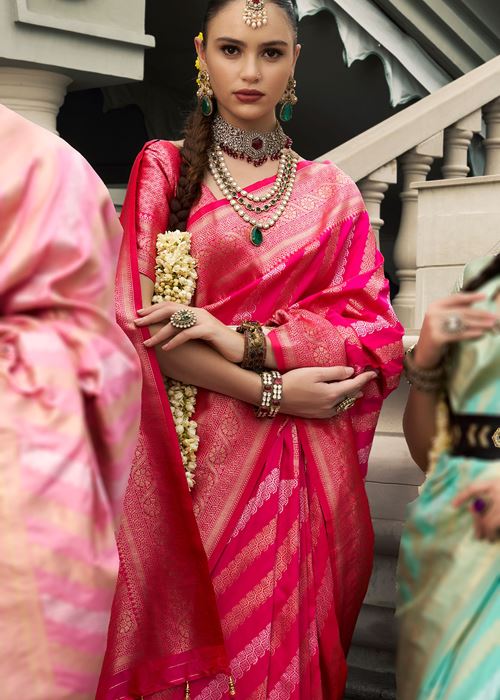 Rani Pink Banarasi Silk Saree With Jacquard Woven Work