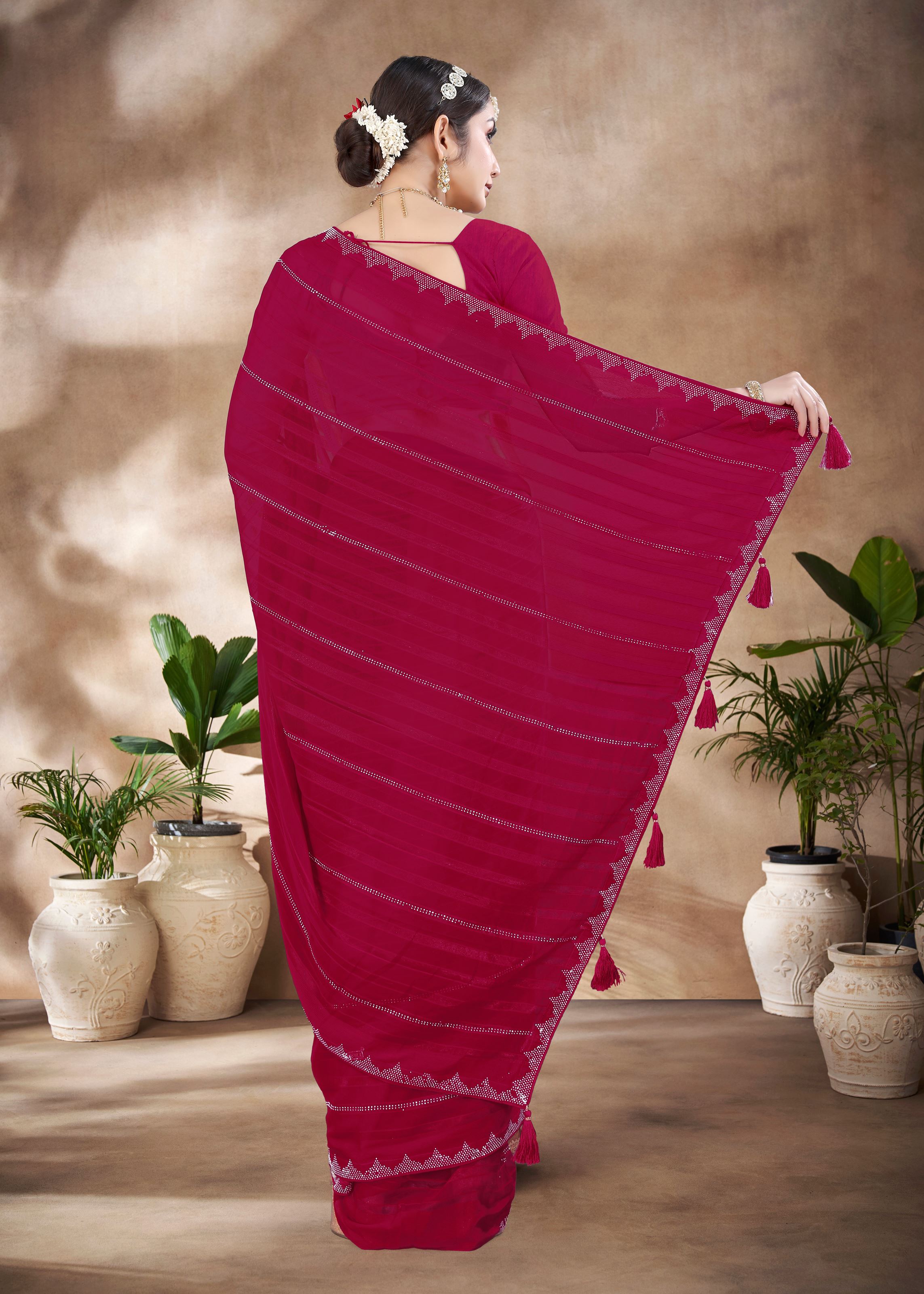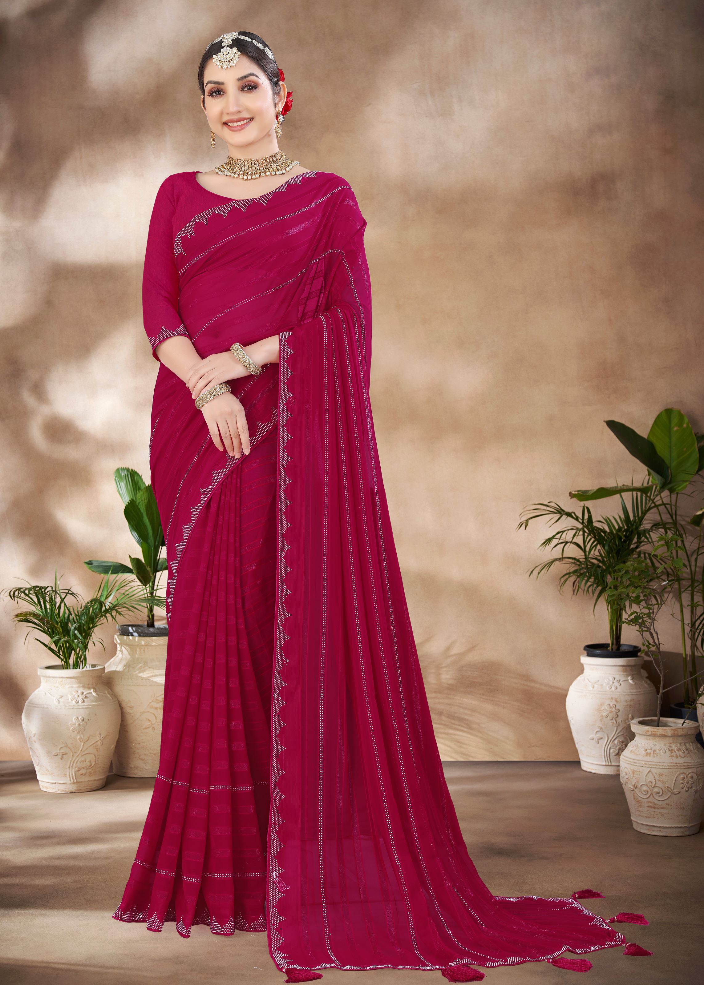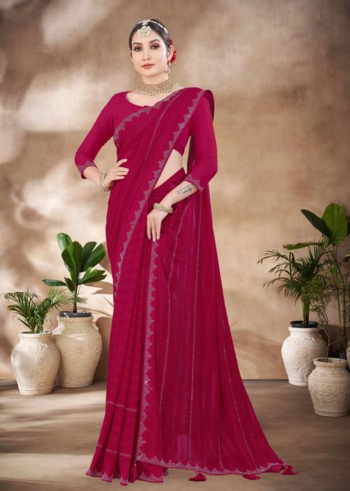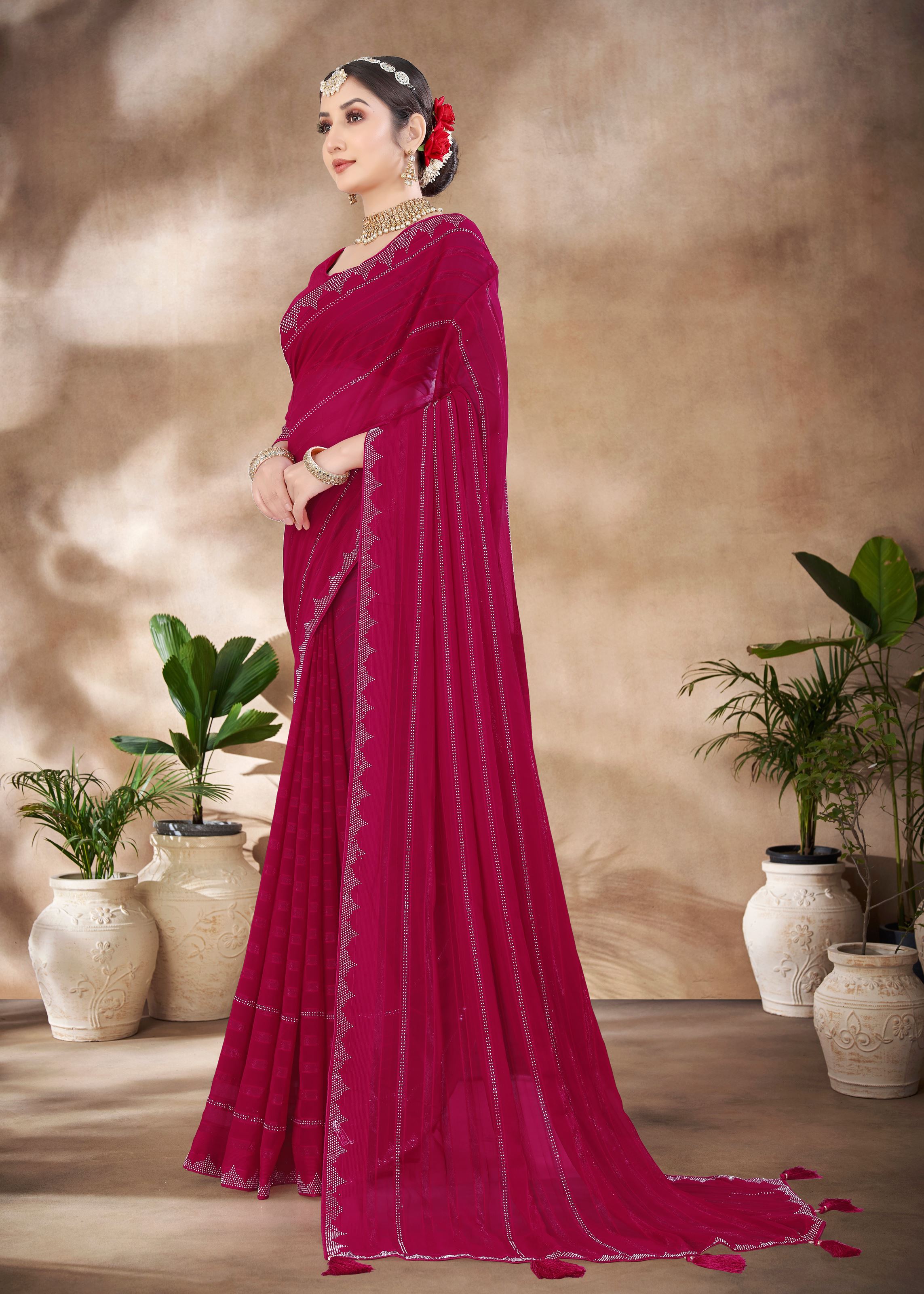 Rani Pink Chiffon Saree With Swarovski Diamond Work