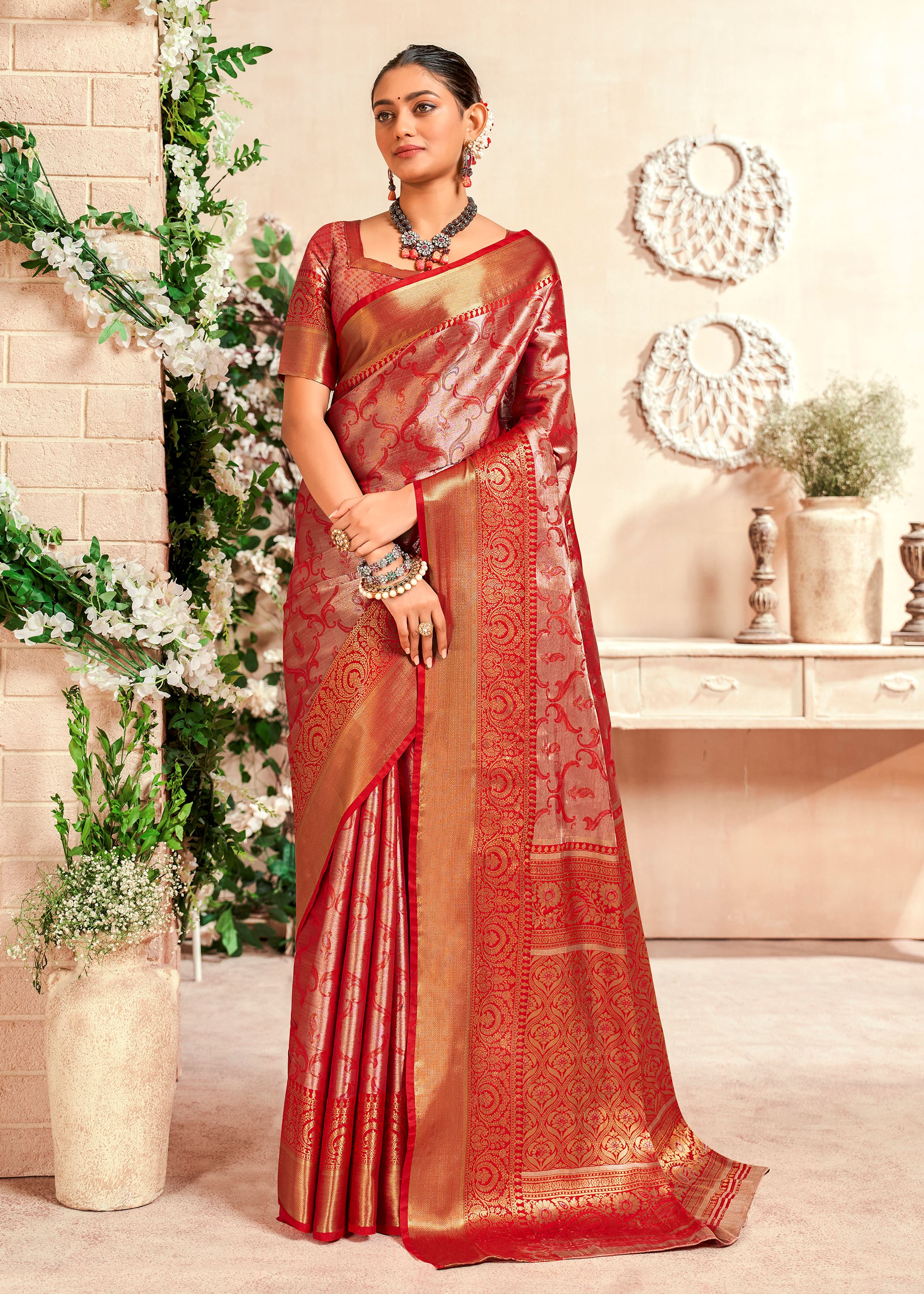 Red Banarasi Silk Saree With Zari Jacquard Woven Work