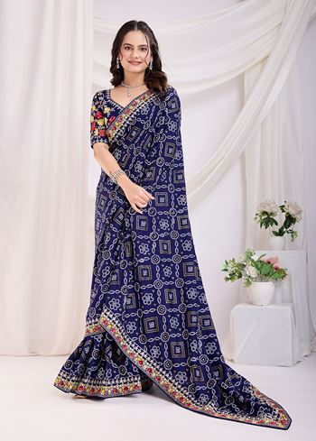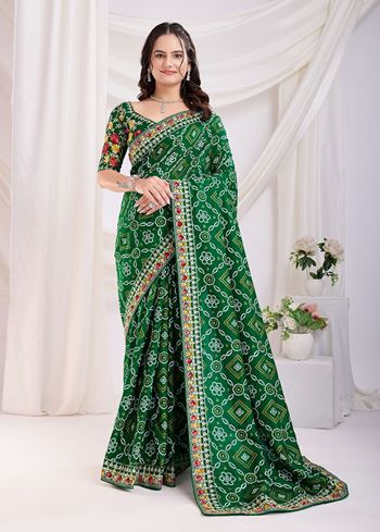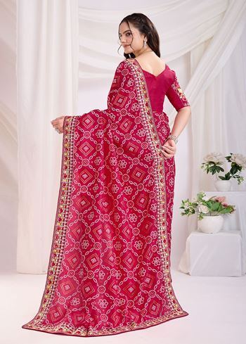 Red Bandhani Printed With Embroidery Work Beautiful Ceremonial Saree