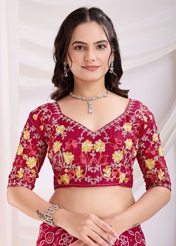 Perfect for women who wish to buy Bandhani sarees online in USA, ceremonial embroidered sarees, or ethnic art silk drapes, this saree offers sophistication, grace, and versatility. The combination of Bandhani artistry, intricate embroidery, and rich fabric makes it a wardrobe essential for cultural celebrations.Step into any occasion with confidence and elegance with this Red Bandhani Saree, designed to make you stand out while staying true to timeless Indian traditions.