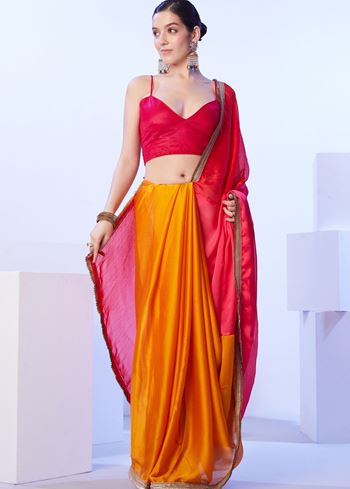 Lightweight, smooth, and easy to drape, the Satin Moss fabric flows gracefully, offering both style and comfort. Pair it with traditional gold jewelry for a classic Bollywood-inspired appearance or accessorize with contemporary accents for a modern chic vibe. This saree is versatile enough to suit both daytime and evening functions.At Aethnofit Fashions, we make it easy to buy Bollywood sarees online in the USA with convenient worldwide shipping and $1 blouse stitching service. Add this Red Satin Moss Designer Party Saree to your ethnic collection and embrace elegance that never fades.