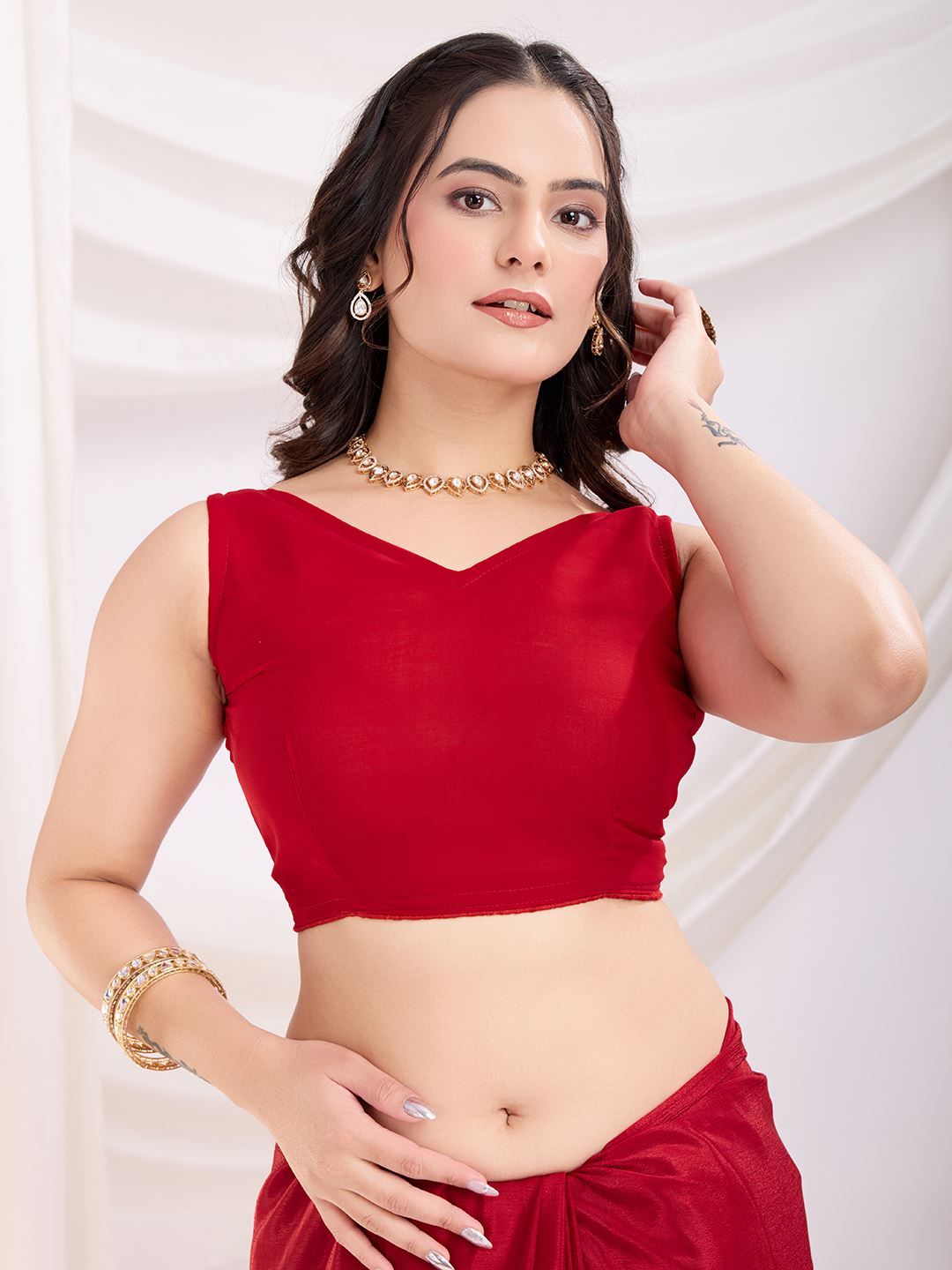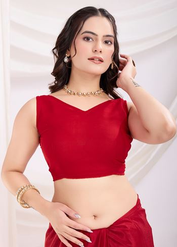 This saree is paired with a matching red art silk blouse, designed to complement the overall grandeur. The blouse fabric can be customized into various styles—classic or contemporary—allowing you to showcase your unique fashion statement.Complete your look with traditional gold jewelry, a clutch embellished with stones, and stylish footwear to radiate true elegance. Whether you are a bride or attending a festive gathering, this saree embodies tradition, sophistication, and unmatched charm.