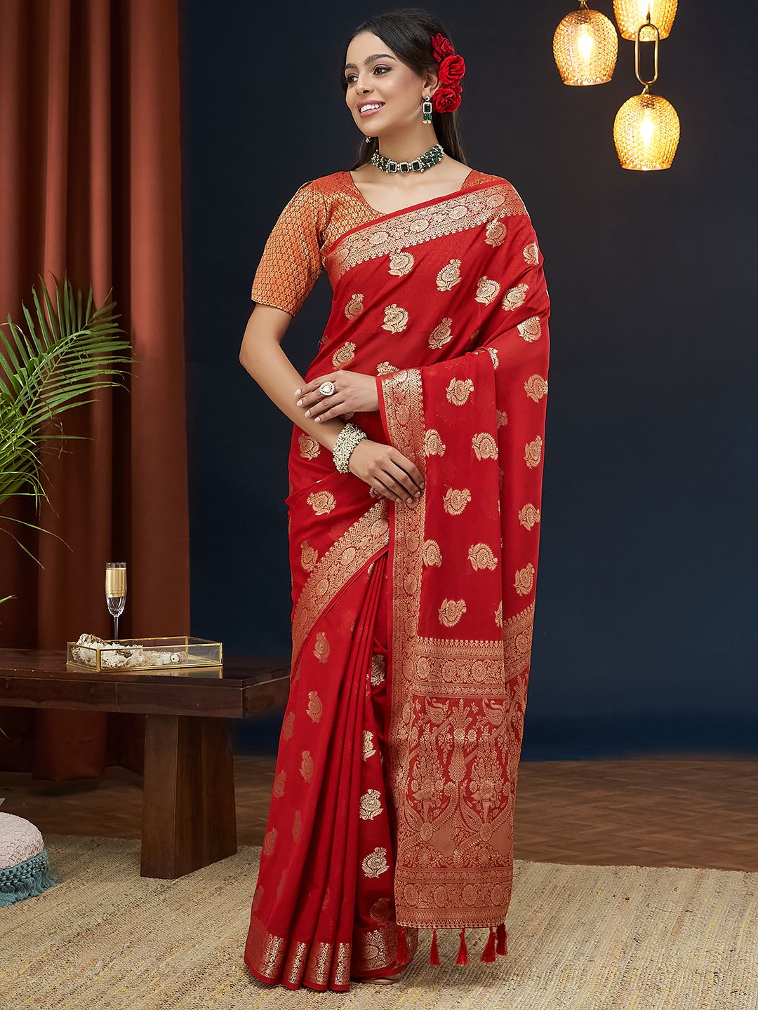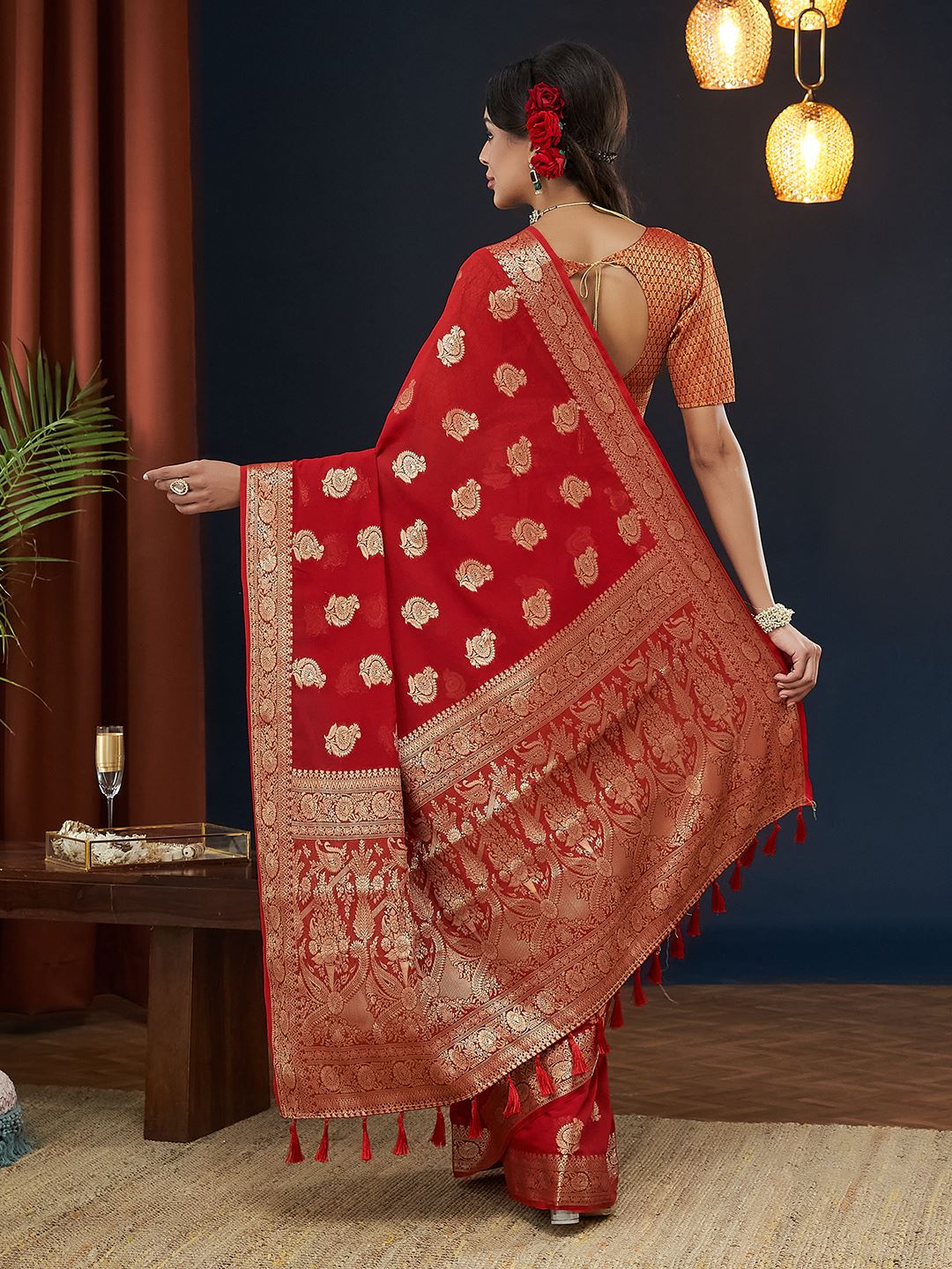 Red Colour Georgette Designer Zari Woven Saree For Partywear Looks