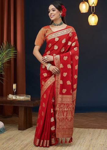 Elevate your festive charm with this Red Colour Georgette Designer Zari Woven Saree, a perfect blend of tradition and designer finesse. Crafted from premium quality georgette fabric, this saree drapes effortlessly, giving you a flowy and graceful silhouette. The striking red shade embodies celebration, passion, and elegance, making it a timeless addition to your ethnic wardrobe.
