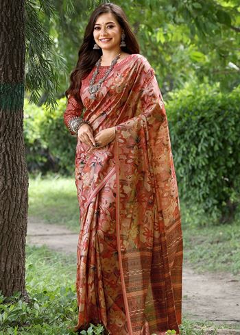 The vibrant red base serves as the perfect canvas for delicate floral prints that lend the saree a soft, feminine charm. The printed pallu features artistic detailing, creating a visually balanced and gracefully flowing silhouette. Whether you're attending a festive celebration, casual gathering, or a cultural event, this saree radiates traditional beauty with a contemporary twist.