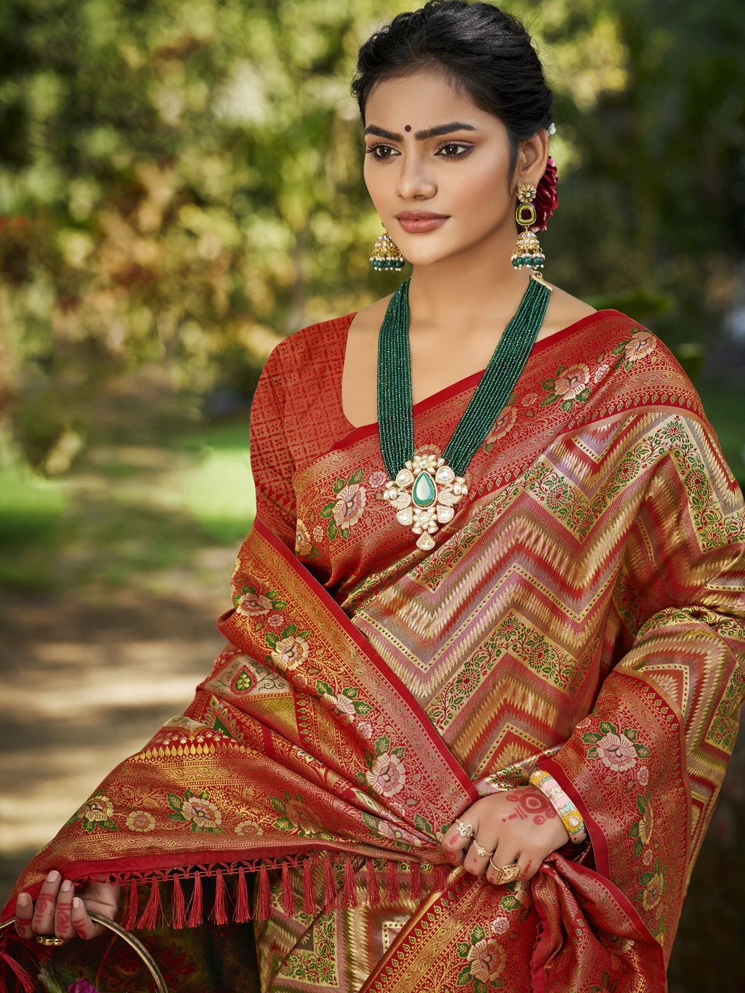 Red Dharmavaram Silk Saree With Classic Drape and Refined Beauty