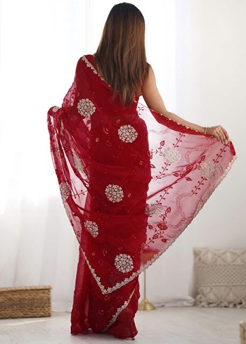 Red Fancy Embroidery Work Jimmy Choo Girlie Bollywood Saree