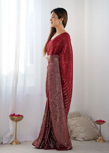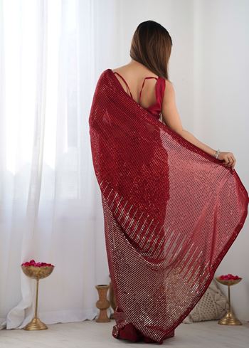 Red Georgette Designer Sequins Embroidery Work Bollywood Style Partywear Saree