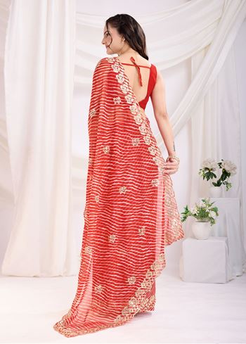 Red Georgette Sequins Designer Bollywood Saree